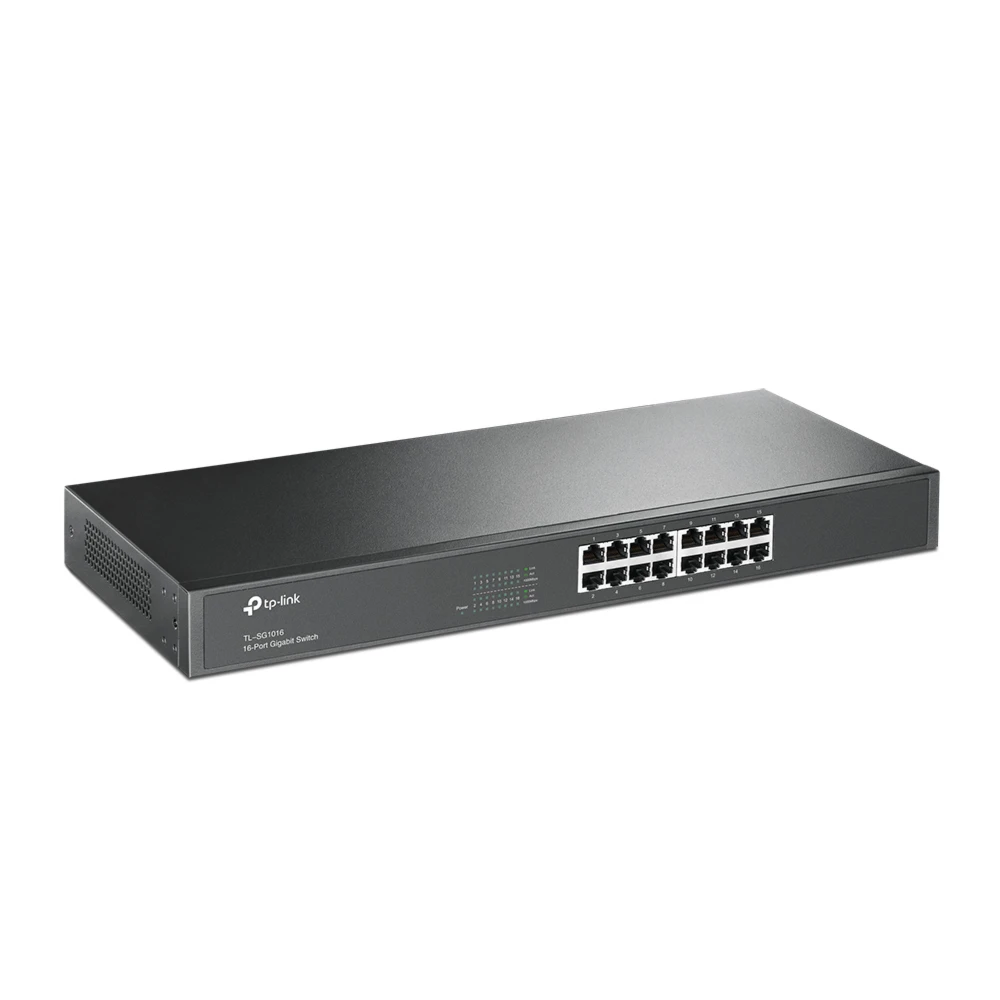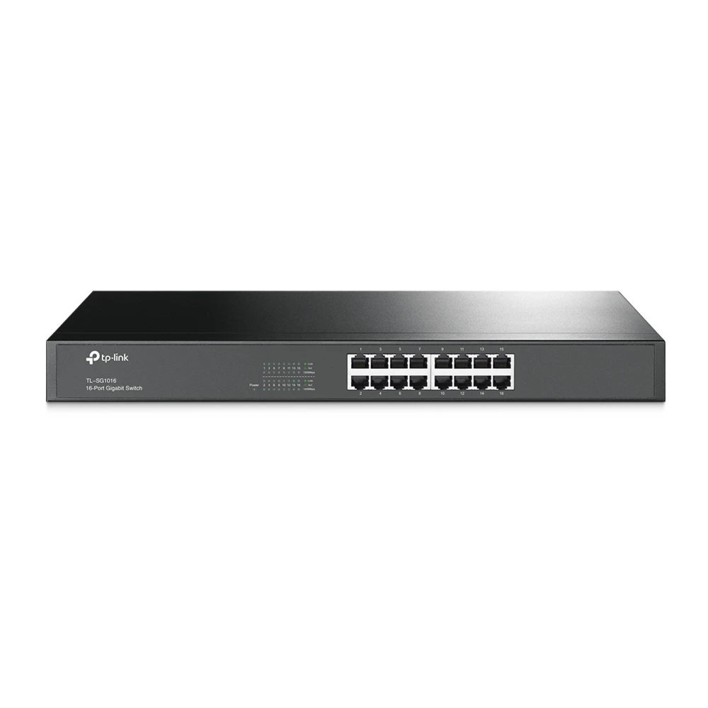 TP-Link 16-Port Gigabit Rackmount Network Switch. Switch type: Unmanaged. Basic switching RJ-45 Ethernet ports type: Gigabit Ethernet (10/100/1000), Basic switching RJ-45 Ethernet ports quantity: 16. Full duplex. MAC address table: 8000 entries, Switching capacity: 32 Gbit/s. Networking standards: IEEE 802.3ab, IEEE 802.3i, IEEE 802.3u, IEEE 802.3x. Power connector: AC-in jack. Rack mounting, Form factor: 1U