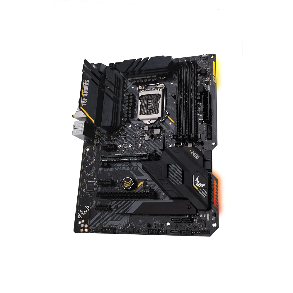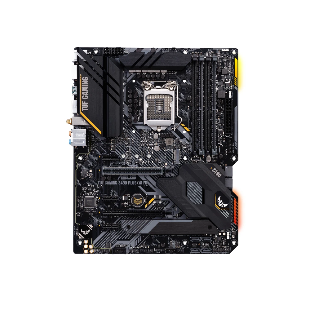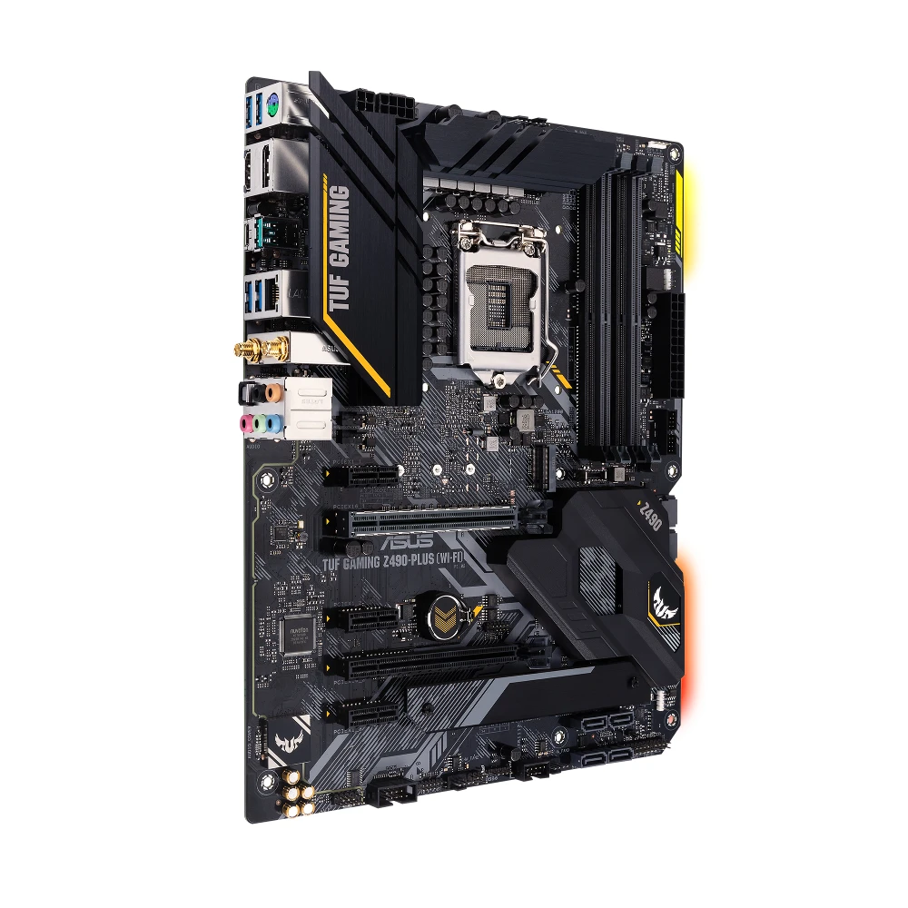 TUF Gaming Z490-Plus (Wi-Fi) provides a complete, high-performance gaming package with a long list of features to improve your experience, including ultrafast networking for smoother online gameplay, pristine audio with positional cues for FPS gaming, and onboard RGB lighting that syncs with attached accessories to help you create a personalized gaming atmosphere.