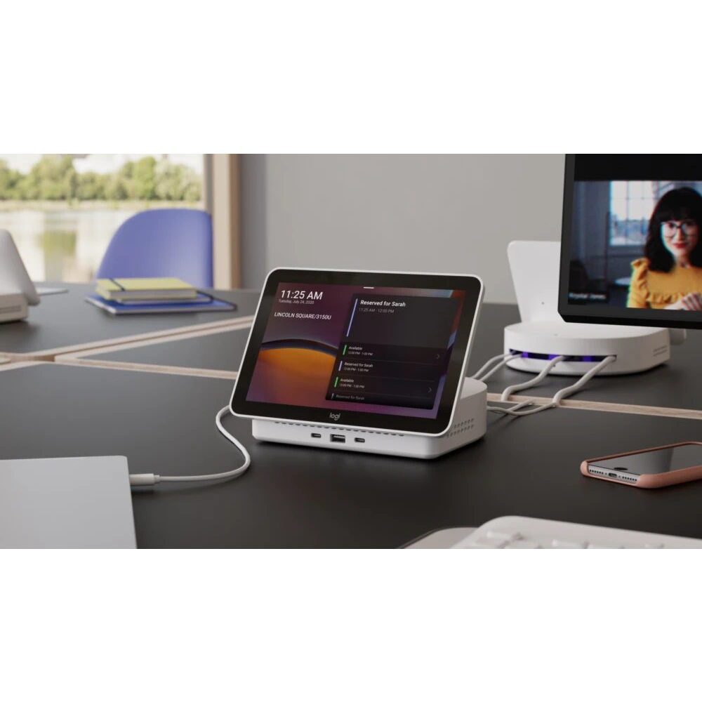 Logitech Logi Dock Flex. Display diagonal: 20.3 cm (8"), Display resolution: 1280 x 800 pixels, Display technology: IPS. Housing colour: White, Cable lock slot type: Kensington. Wi-Fi standards: 802.11a, 802.11b, 802.11g, Wi-Fi 4 (802.11n), Wi-Fi 5 (802.11ac), Ethernet LAN data rates: 10,100,1000 Mbit/s, Security algorithms: 128-bit AES. Power source type: DC. Width: 201 mm, Depth: 177 mm, Height: 141 mm