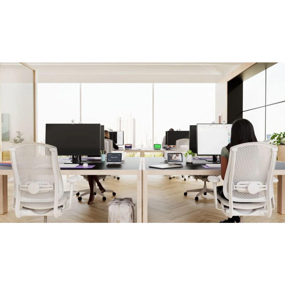 Designed for full connectivity, Logi Dock Flex includes ports for 6 USB peripherals, dual 4K displays, Gigabit Ethernet, and charges laptops up to 100w of power with no special drivers required. By using a single USB-C cable, employees easily connect their laptops and gain immediate access to all desk peripherals. Locked-in cable management keeps cables securely attached and desks free from clutter.
