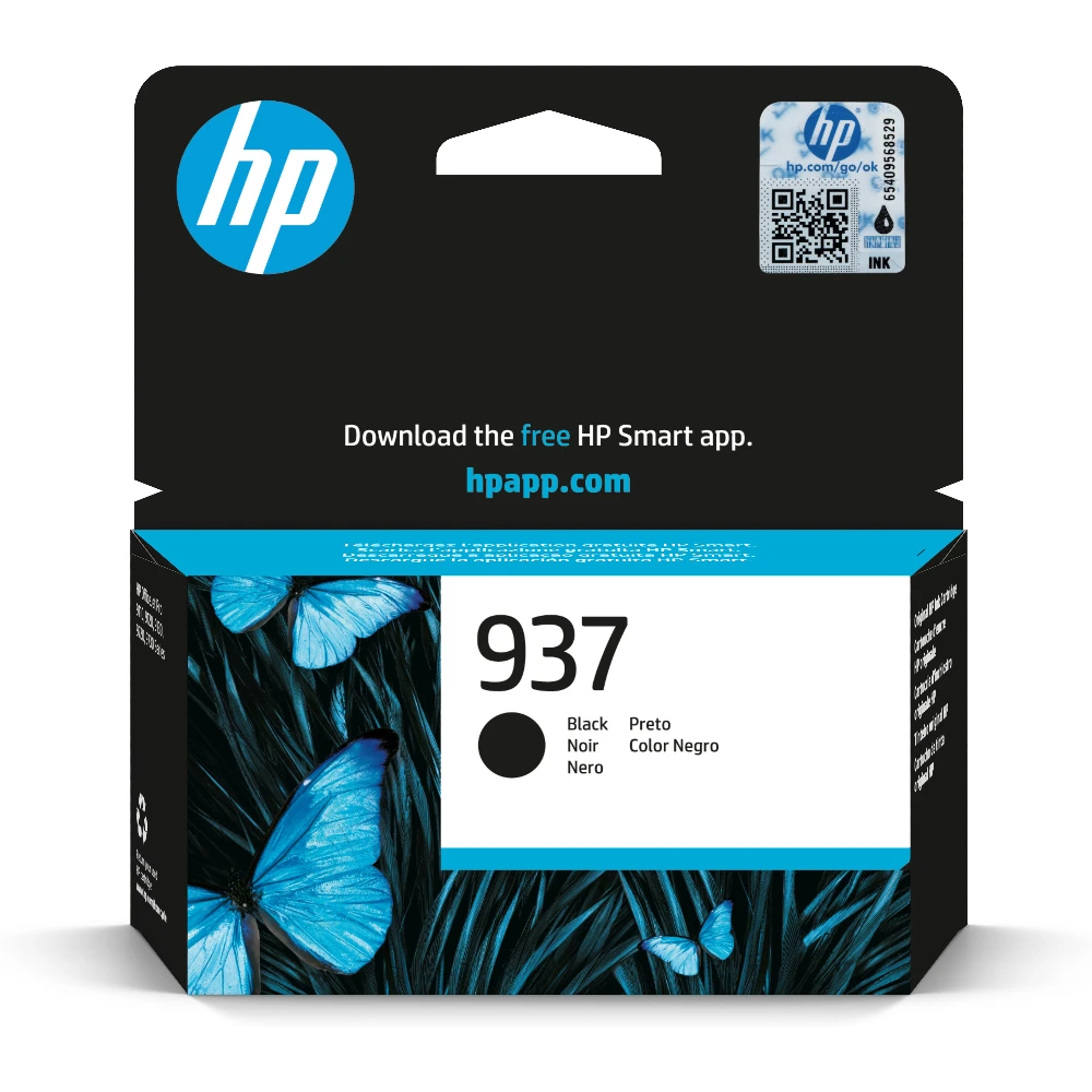 937 Black Original Ink Cartridge HP 937 Black Original Ink Cartridge. Cartridge capacity: Standard Yield, Supply type: Single pack, Printing colours: Black, Quantity per pack: 1 pc(s), Black ink page yield: 1250 pages Reliable, quality printing for business Ideal for professional-quality printing with vibrant color and bold blacks.
