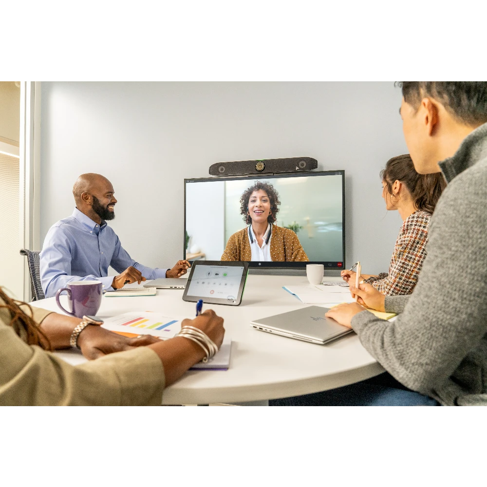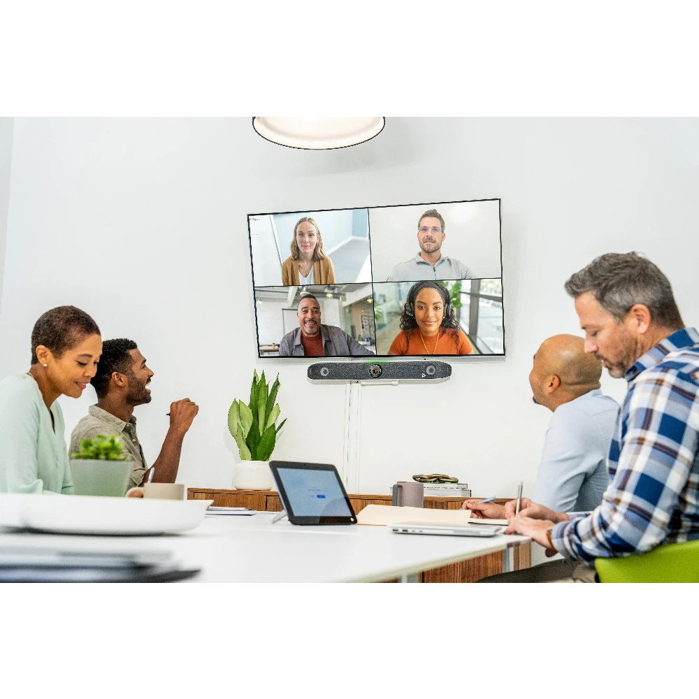Specifically engineered to improve video conferencing experiences–the Poly Studio X52 all-in-one video bar simplifies and enhances meetings. Bring meeting equality to attendees both in and out of the room with innovative audio and video experiences.