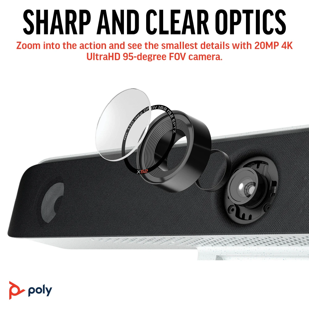 Studio X52 All-In-One Video Bar POLY Studio X52 All-In-One Video Bar. Product type: Group video conferencing system. HD type: 4K Ultra HD, Maximum frame rate: 30 fps. Field of view (FOV) angle: 95°, Digital zoom: 5x. Ethernet LAN, Wi-Fi. Bluetooth. Operating system installed: Android. Product colour: White Dramatically improve meetings
