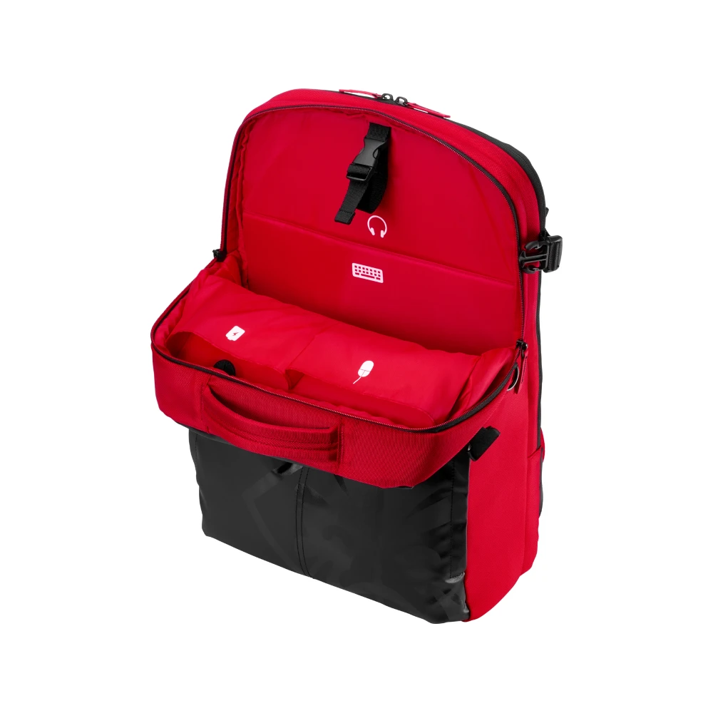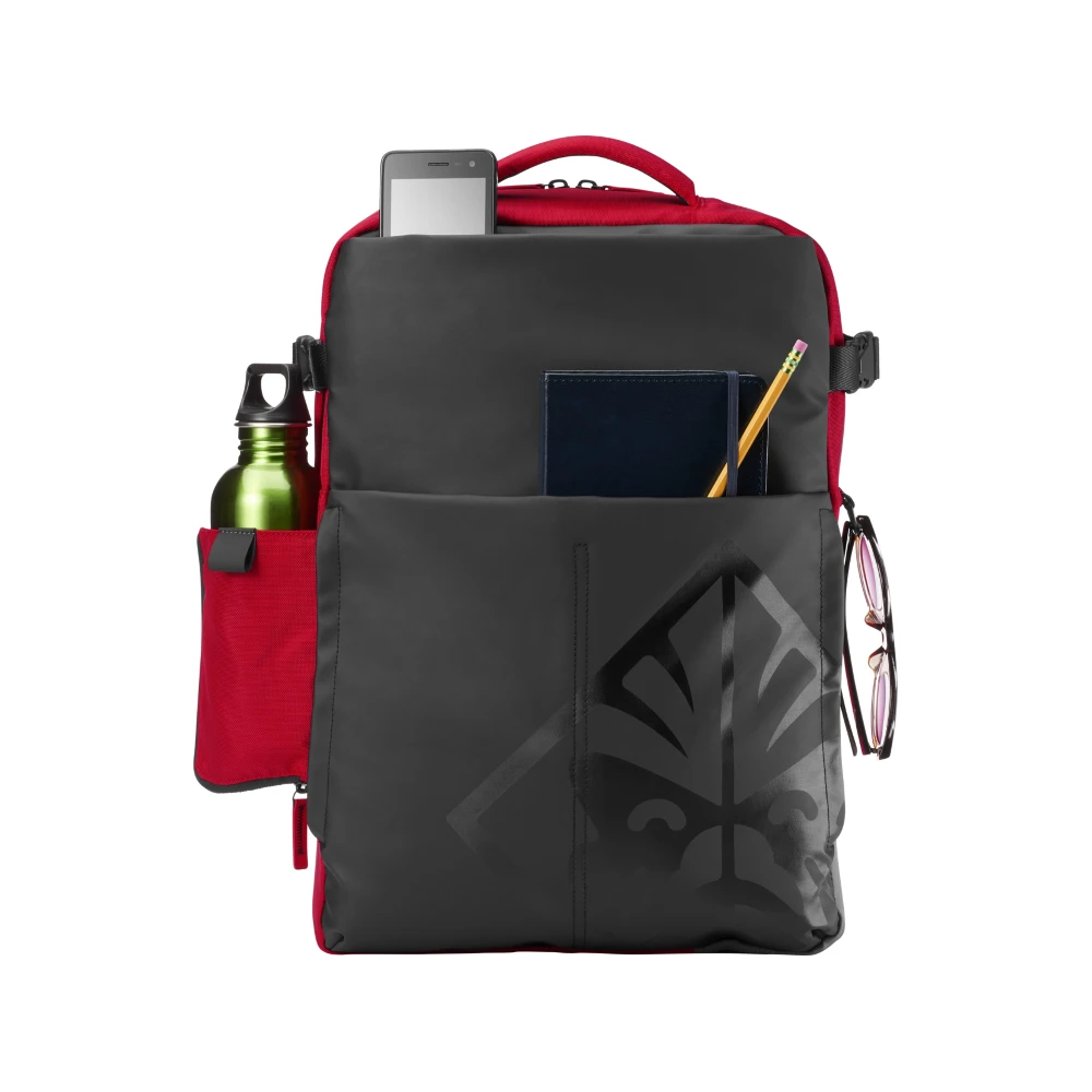 HP OMEN by Gaming. Backpack type: Casual backpack, Product main colour: Black, Red, Maximum screen size: 43.9 cm (17.3"). Width: 490 mm, Depth: 340 mm, Height: 160 mm. Package width: 490 mm, Package depth: 340 mm, Package height: 160 mm. Material: Fabric