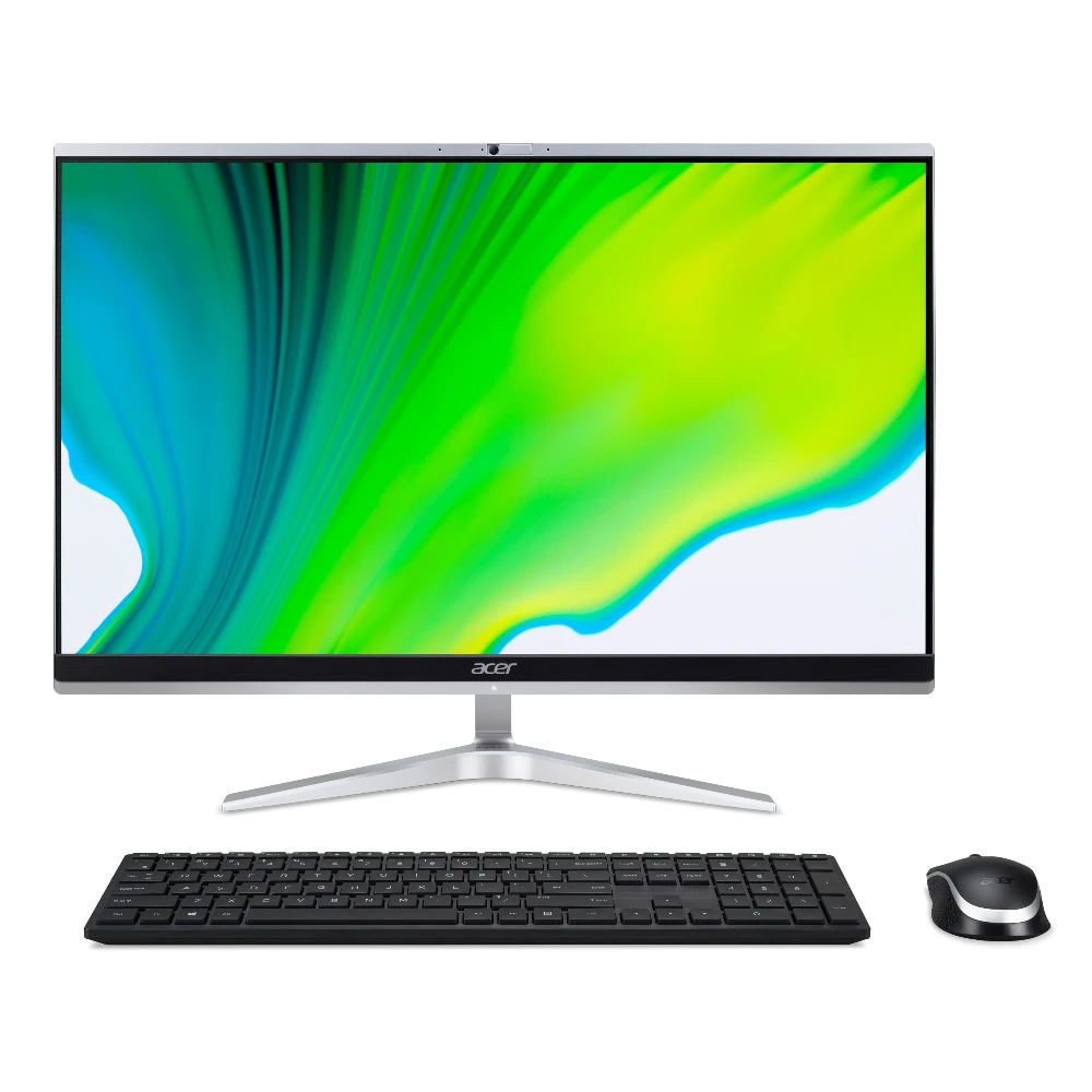 Intel Core i3-1115G4 (6MB Cache), 8GB DDR4-SDRAM, 256GB SSD, 60.5 cm (23.8") Full HD 1920 x 1080 IPS, Intel UHD Graphics, LAN, WLAN, Bluetooth, Webcam, Windows 11 Home 64-bit Acer Aspire C24-1650. Product type: All-in-One PC. Display diagonal: 60.5 cm (23.8"), HD type: Full HD, Display resolution: 1920 x 1080 pixels, Panel type: IPS. Processor family: Intel® Core™ i3. Internal memory: 8 GB, Internal memory type: DDR4-SDRAM. Total storage capacity: 256 GB, Storage media: SSD. On-board graphics card model: Intel® UHD Graphics. Built-in camera. Operating system installed: Windows 11 Home. Product colour: Silver This 24” All-In-One computer provides a great computing experience in a single unit. The slim, space saving elegantly styled device provides users with the 11th Gen Intel® CPU and impressively thin bezels so users see more of the screen.