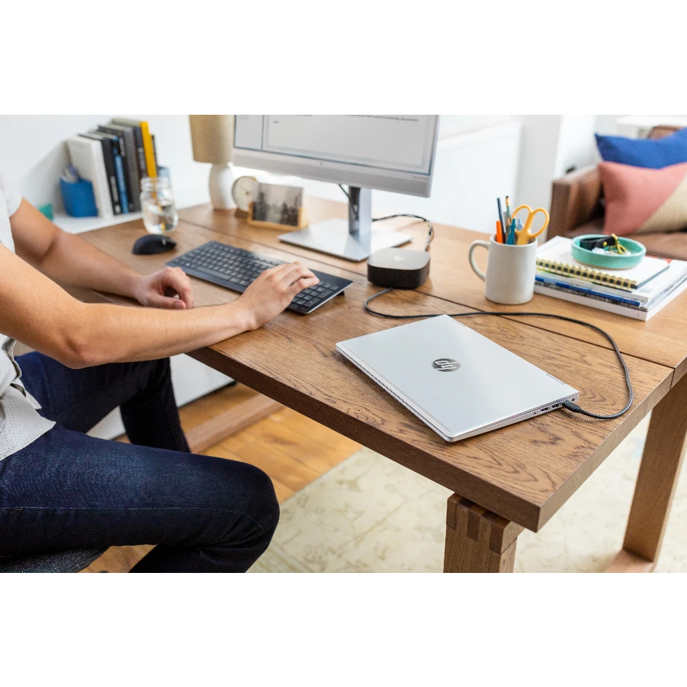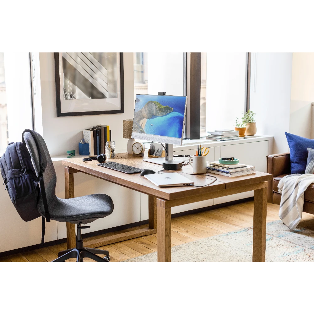 Connect and collaborate comfortably on the HP EliteDisplay E243m 60.45 cm (23.8") Monitor, which is Skype for Business? certified for optimal video and audio and has a 3-sided micro-edge bezel.