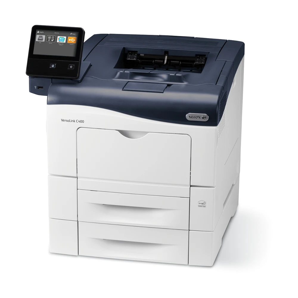 Xerox VersaLink C400 A4 35 / 35ppm Duplex Printer Sold PS3 PCL5e/6 2 Trays 700 Sheets. Print technology: Laser, Colour. Number of print cartridges: 4, Maximum duty cycle: 85000 pages per month. Maximum resolution: 600 x 600 DPI. Maximum ISO A-series paper size: A4. Print speed (black, normal quality, A4/US Letter): 35 ppm, Duplex printing. Network ready. Product colour: Black, White