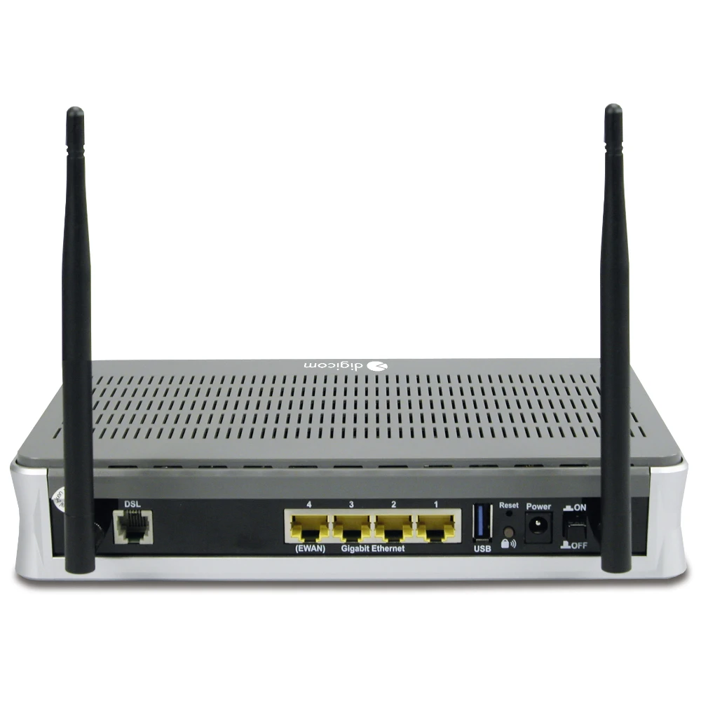 Digicom RA4GW30-B01. Wi-Fi band: Dual-band (2.4 GHz / 5 GHz), Top Wi-Fi standard: Wi-Fi 4 (802.11n), WLAN data transfer rate (max): 300 Mbit/s. Ethernet LAN interface type: Gigabit Ethernet, Ethernet LAN data rates: 10,100,1000 Mbit/s, Cabling technology: 10/100/1000Base-T(X). Security algorithms: TKIP, WEP, WPA, WPA2, WPS. Supported network protocols: IPv4/IPv6, DDNS, PPPoA, PPPoE, IPoA, IPoE. Product colour: Grey, LED indicators: LAN, Power, WAN, WLAN