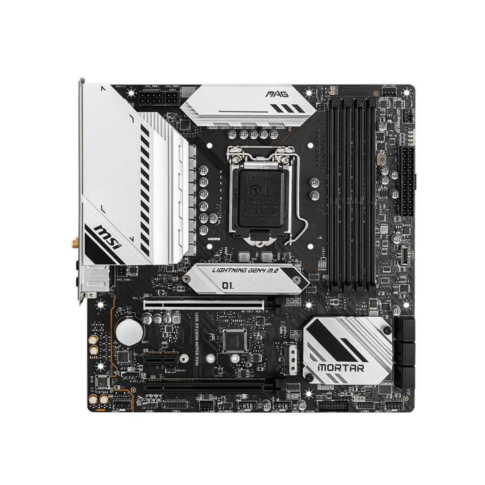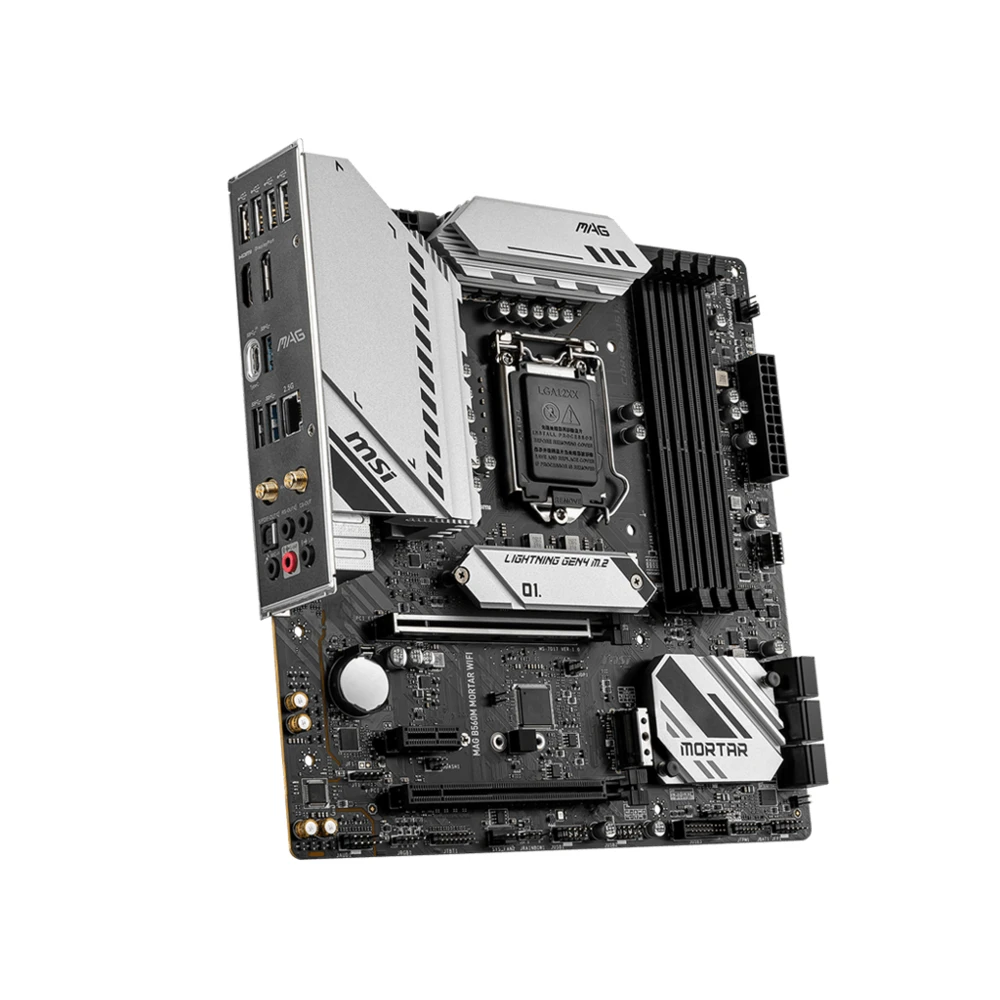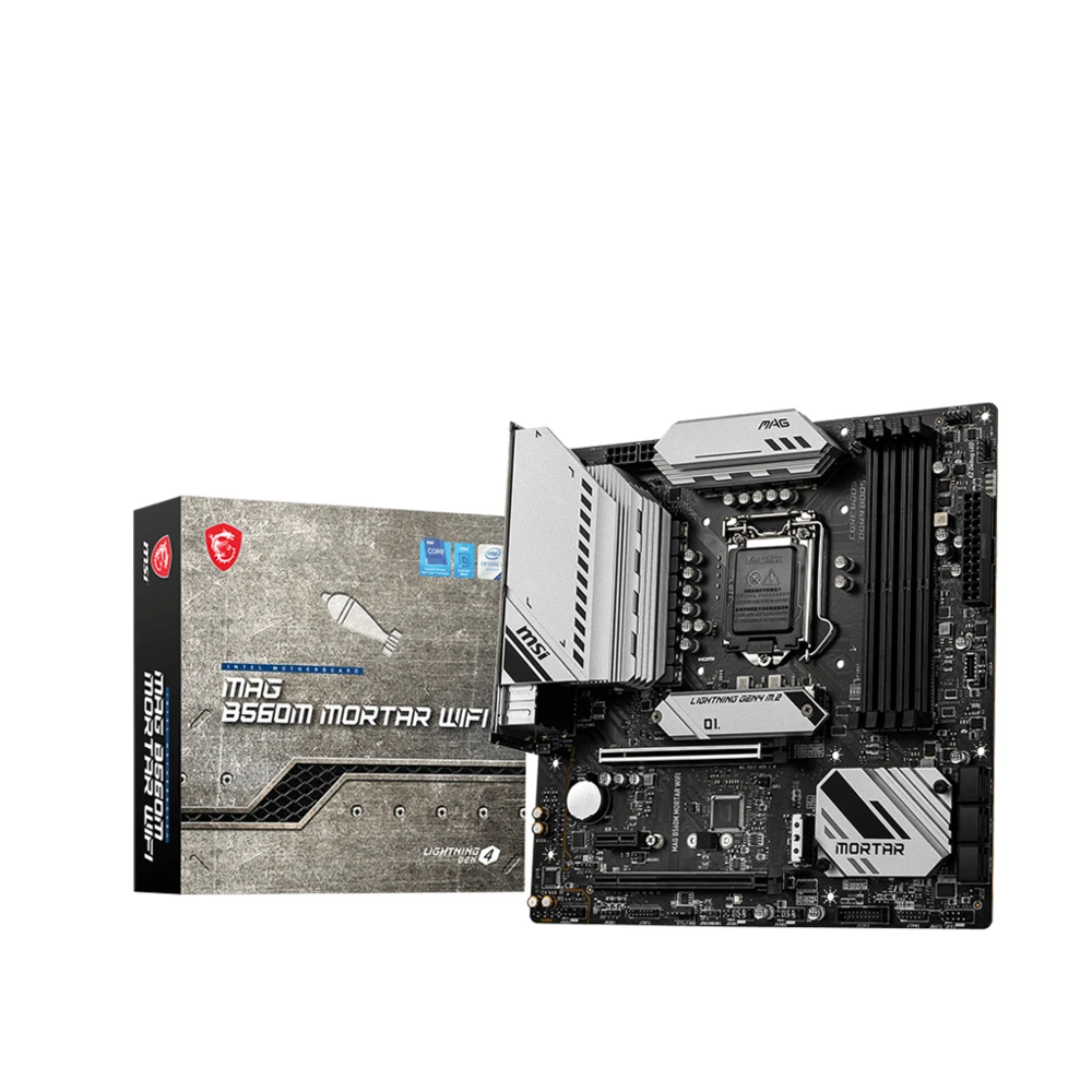 MSI MAG B560M MORTAR WIFI. Processor manufacturer: Intel, Processor socket: LGA 1200 (Socket H5), Compatible processor series: Intel® Celeron®, Intel® Core™ i3, Intel® Core™ i5, Intel® Core™ i7, Intel® Core™ i9, Intel® Pentium®. Supported memory types: DDR4-SDRAM, Maximum internal memory: 128 GB, Memory slots type: DIMM. Supported storage drive interfaces: M.2, SATA III, Supported storage drive types: HDD & SSD. Parallel processing technology support: 2-Way CrossFireX. Ethernet interface type: 2.5 Gigabit Ethernet, LAN controller: Realtek RTL8125B, Top Wi-Fi standard: Wi-Fi 6 (802.11ax)