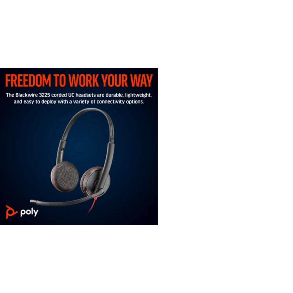 Blackwire 3225 Stereo USB-C Headset +3.5mm Plug +USB-C/A Adapter (Bulk)