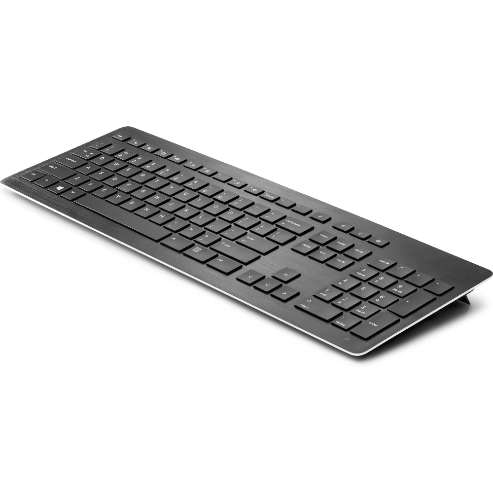 Boost your productivity and work comfortably at your desk or across the room with the elegant, redesigned, anodized aluminum-trimmed HP Wireless Premium Keyboard.