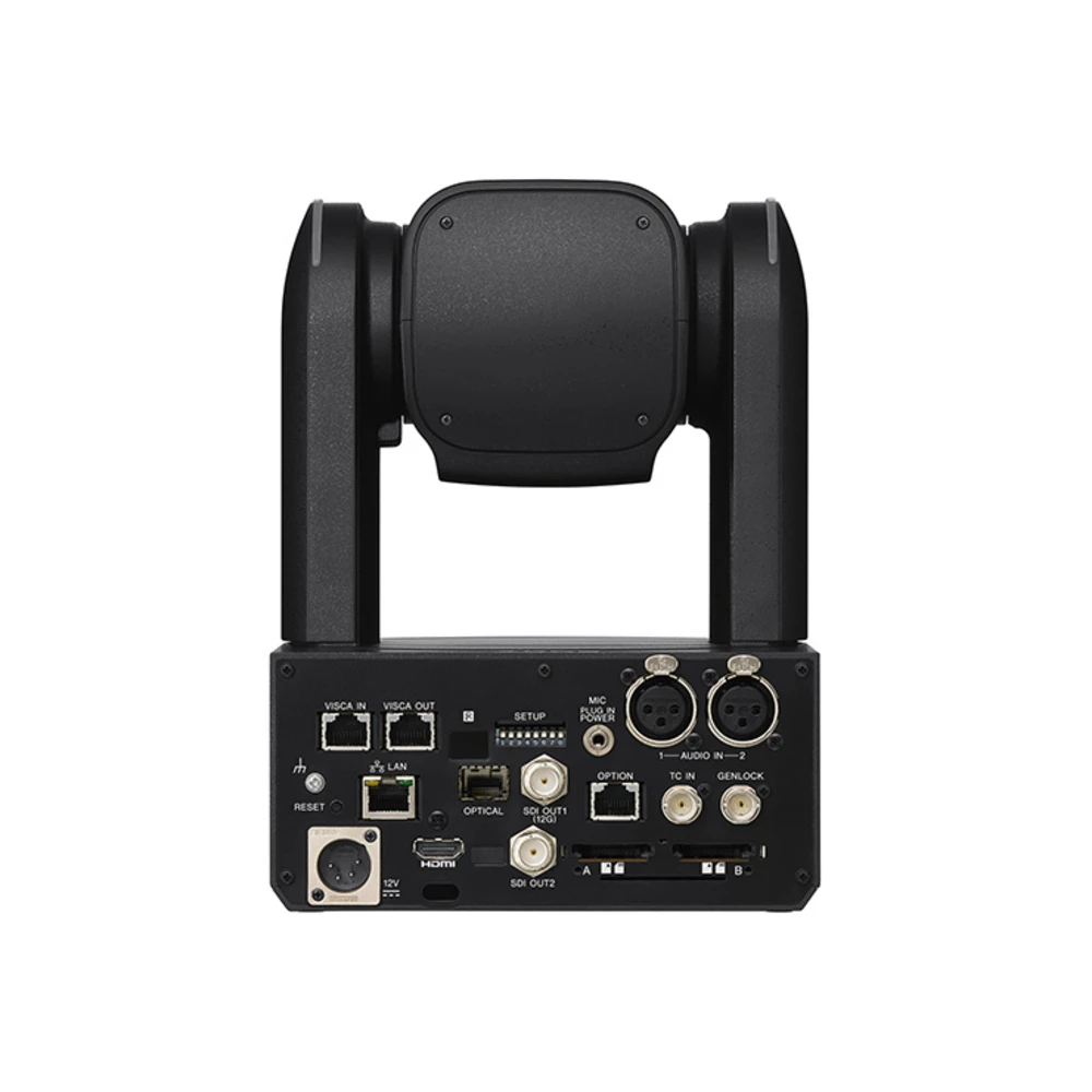 In addition to 12G SDI primary output, 3G SDI is provided for monitoring. The BRC-AM7 offers a variety of video output options such as optical-fiber 12G SDI available via an SFP slot, and HDMI. Audio input can be connected via a pair of 3-pin XLR type connectors or a 3.5 mm stereo jack, providing plug-in compatibility.