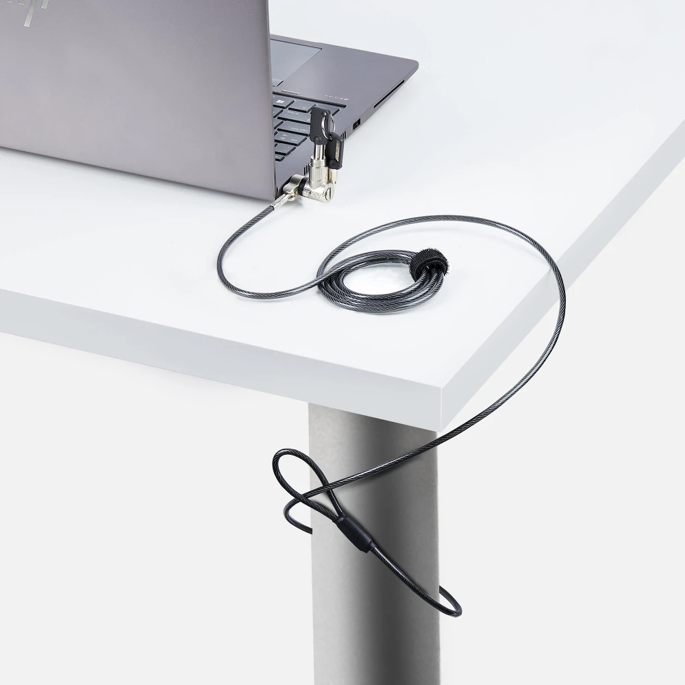 - 3-in-1 security laptop lock compatible with Noble Wedge®/K-Slot/Nano security slots; Adjustable locking tip - Secure notebook/dock/monitor/printer/other equipment - For HP/Dell/Microsoft computers - Universal computer lock ships w/two keys; On demand master key; Lock can withstand up to 135lbf (61kg) pull force - Cut resistant steel cable 6.6ft; Includes spacers to protect from scuffs and improve fitting - 360° Lock head rotation w/90° pivot to help prevent strain from coiling