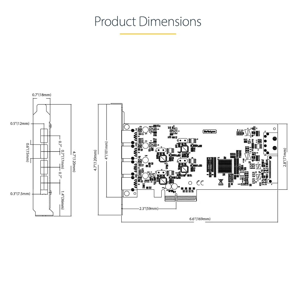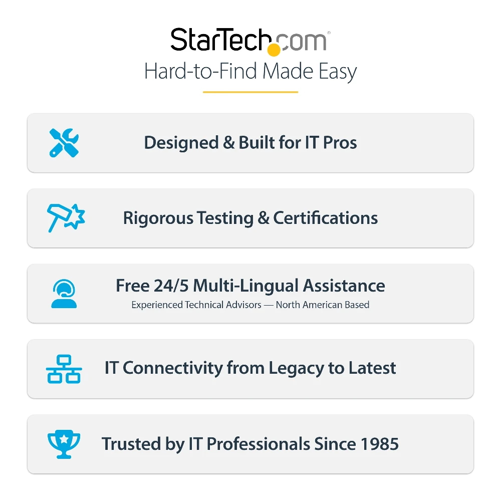 StarTech.com 4-Port USB PCIe Card, USB 3.2 5Gbps, PCI Express Expansion Card with 4x Independent USB Controllers, 4x USB-A Ports, Windows/macOS/Linux. Host interface: PCIe, Output interface: USB 3.2 Gen 1 (3.1 Gen 1), Expansion card form factor: Full-height / Low-profile. Product colour: Black. Chipset: Renesas - UPD720202 x4, Diodes Incorporated - PI7C9X2G608, Data transfer rate (max): 5 Gbit/s. Windows operating systems supported: Windows 10, Windows 10 Education, Windows 10 Education x64, Windows 10 Enterprise, Windows 10..., Server operating systems supported: Windows Server 2008 R2, Windows Server 2012 R2, Windows Server 2016, Windows Server 2019. Width: 120 mm, Depth: 169 mm, Height: 19 mm