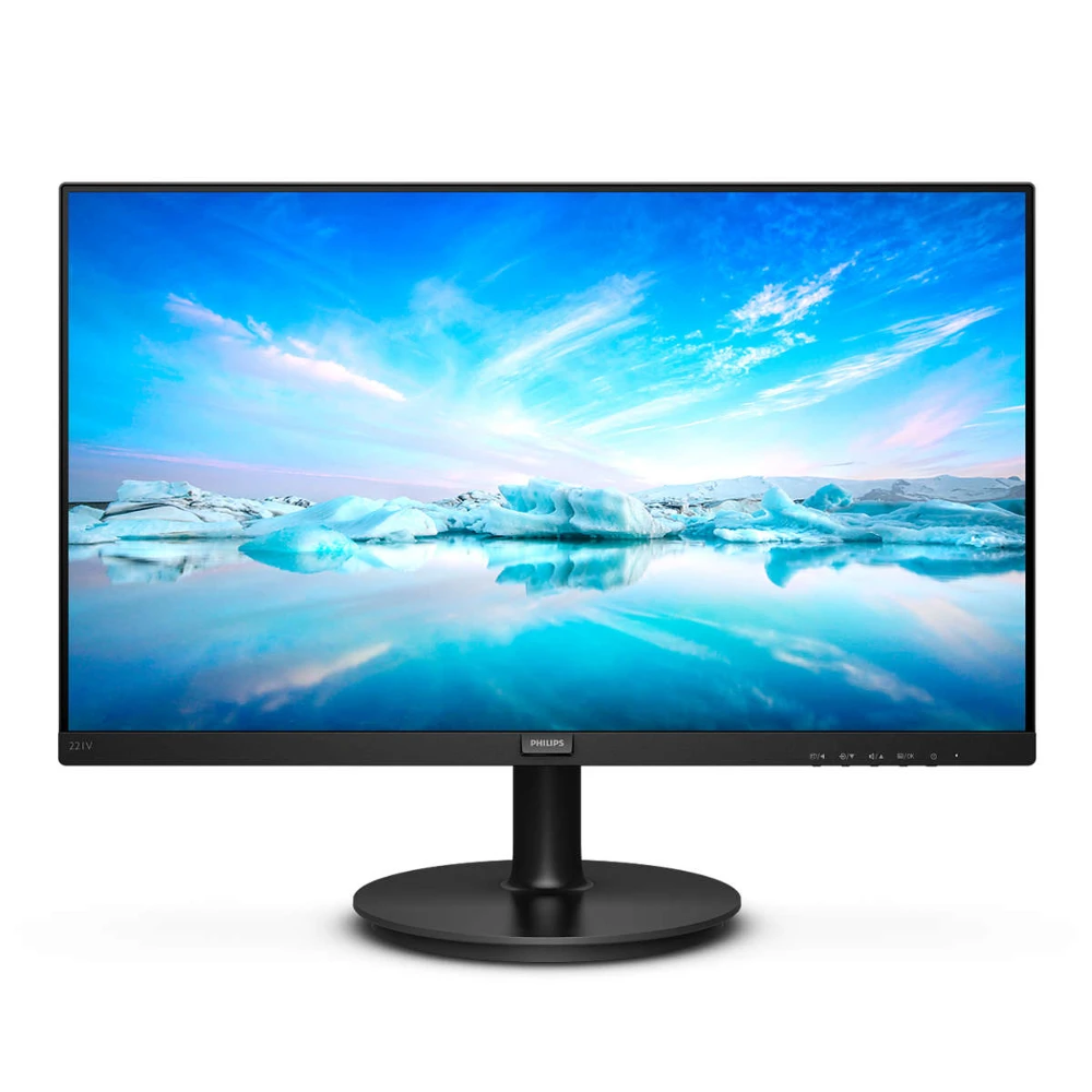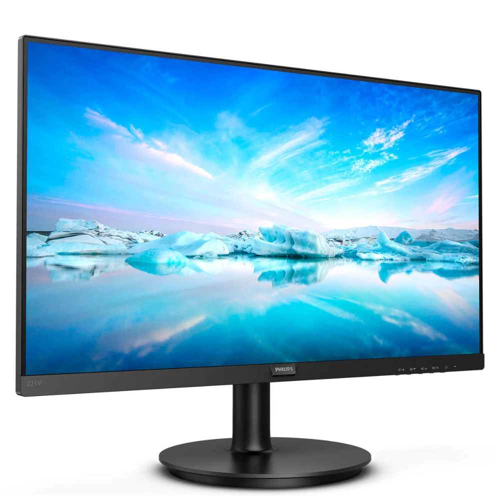 Monitor 221V8A LCD monitor Philips V Line 221V8A/00. Display diagonal: 54.6 cm (21.5"), Display resolution: 1920 x 1080 pixels, HD type: Full HD, Display technology: LED, Display surface: Gloss, Response time: 4 ms, Native aspect ratio: 16:9, Viewing angle, horizontal: 178°, Viewing angle, vertical: 178°. Built-in speaker(s). VESA mounting. Product colour: Black Philips V line wide-view monitor gives viewing beyond boundaries, great value with essential features. Adaptive-Sync provides flawless viewing without screen tearing. Features like LowBlue mode and flicker-free for easy-on-the eyes.
