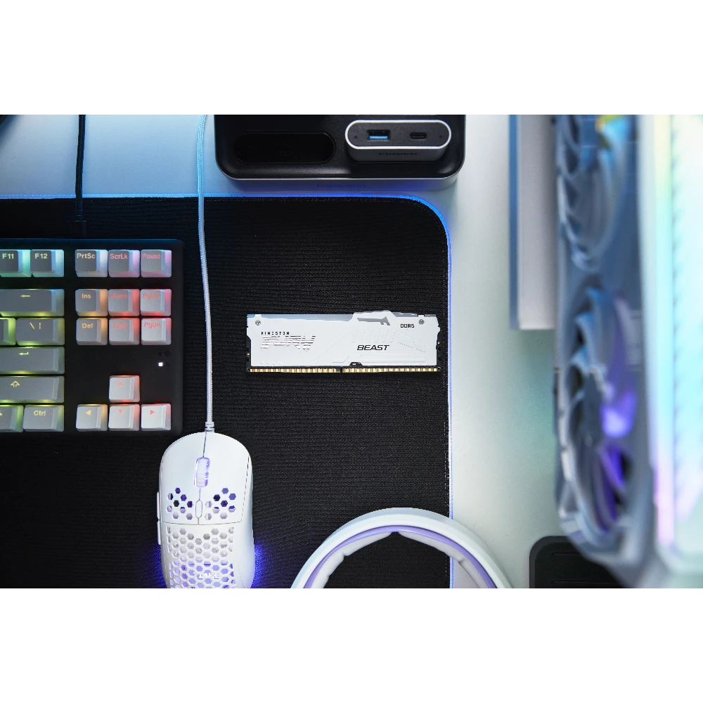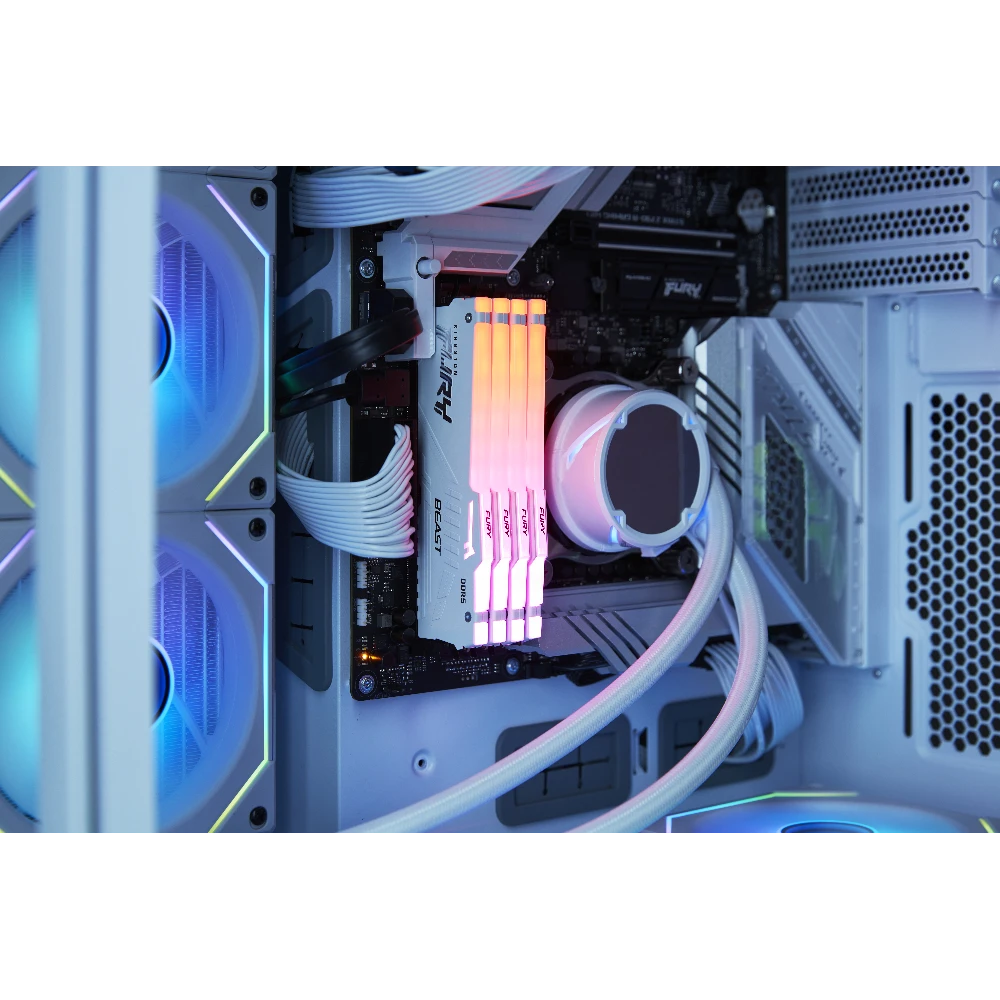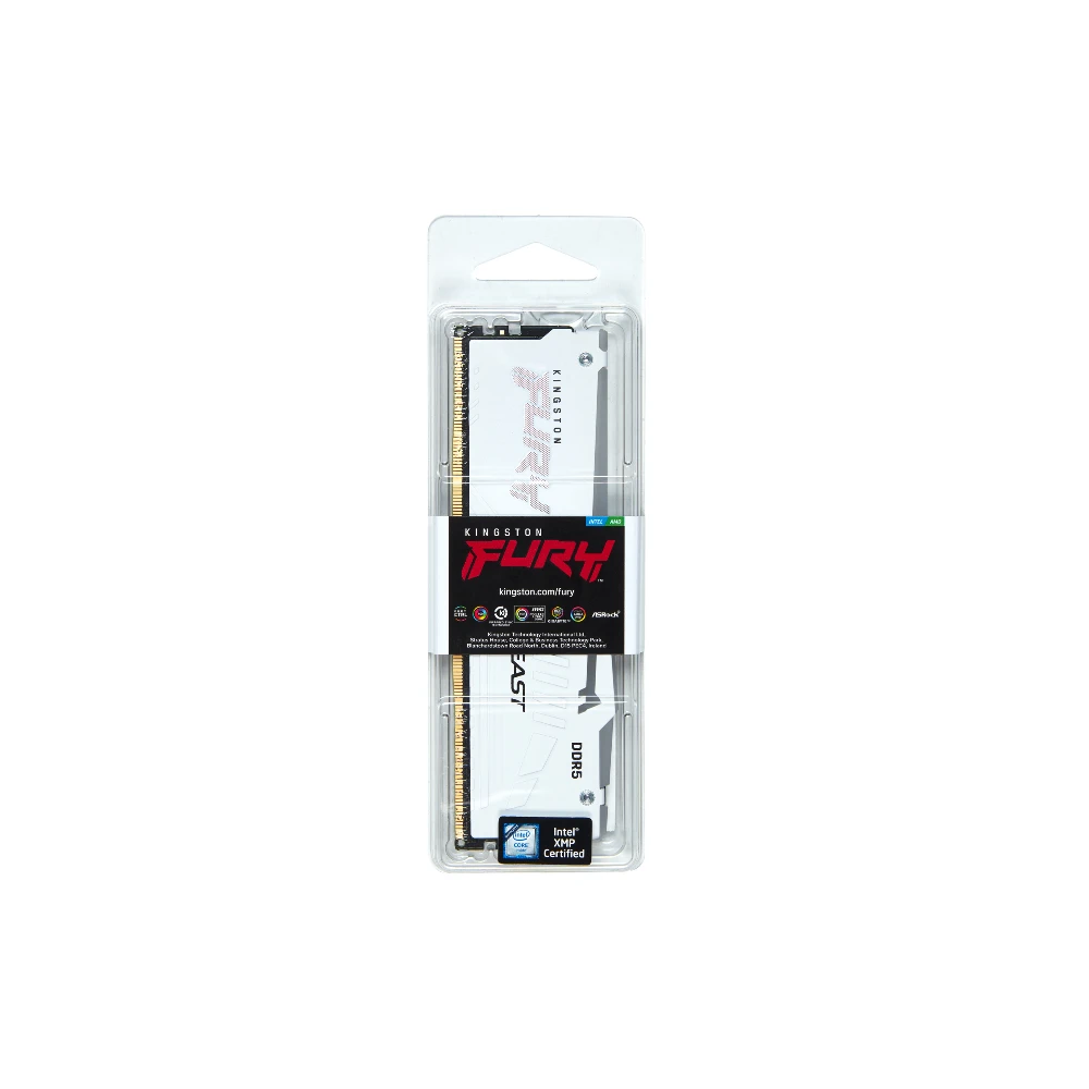 16GB 6400MT/s DDR5 CL32 DIMM FURY Beast White RGB EXPO Kingston Technology FURY Beast 16GB 6400MT/s DDR5 CL32 DIMM White RGB EXPO. Component for: PC, Internal memory: 16 GB, Memory layout (modules x size): 1 x 16 GB, Internal memory type: DDR5, Memory form factor: 288-pin DIMM, CAS latency: 32, ECC, Product colour: White Kingston FURY™ Beast DDR5 RGB Memory - up to 6800MT/s