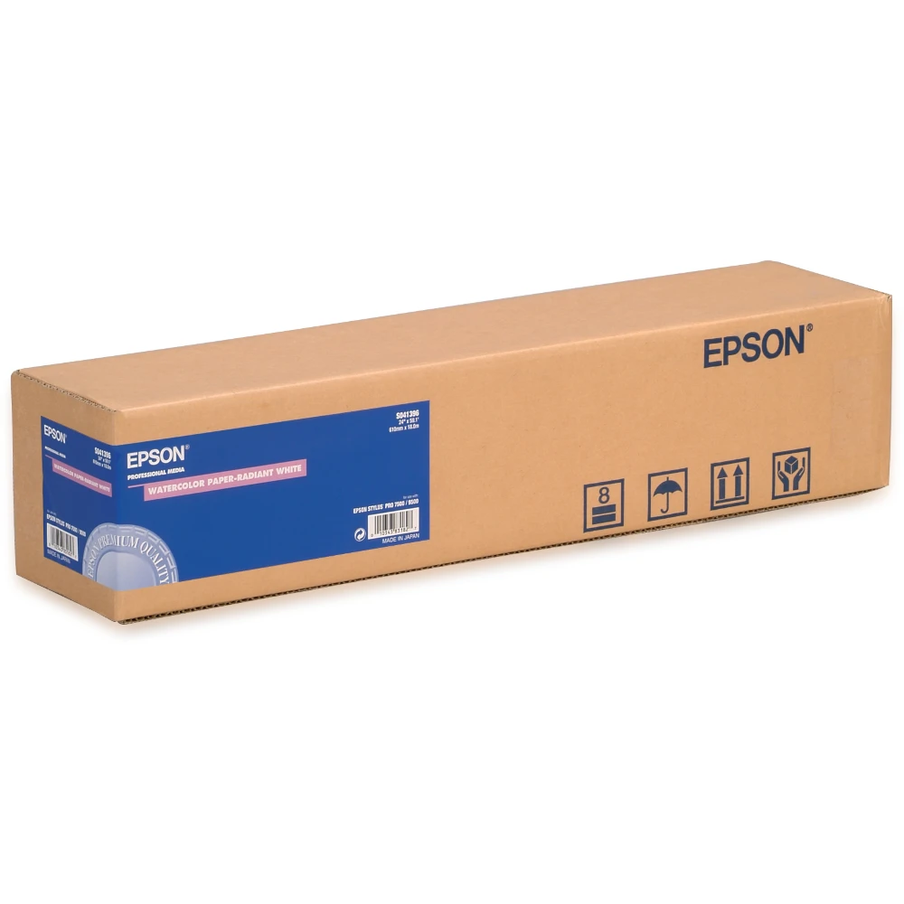 Epson Water Color Paper - Radiant White Roll, 24" x 18 m, 190g/m². Roll length: 18 m, Roll width: 61 cm, Size (imperial): 61 cm (24"), Finish type: Matt, Printing media thickness: 290 µm, Print media weight: 190 g/m²