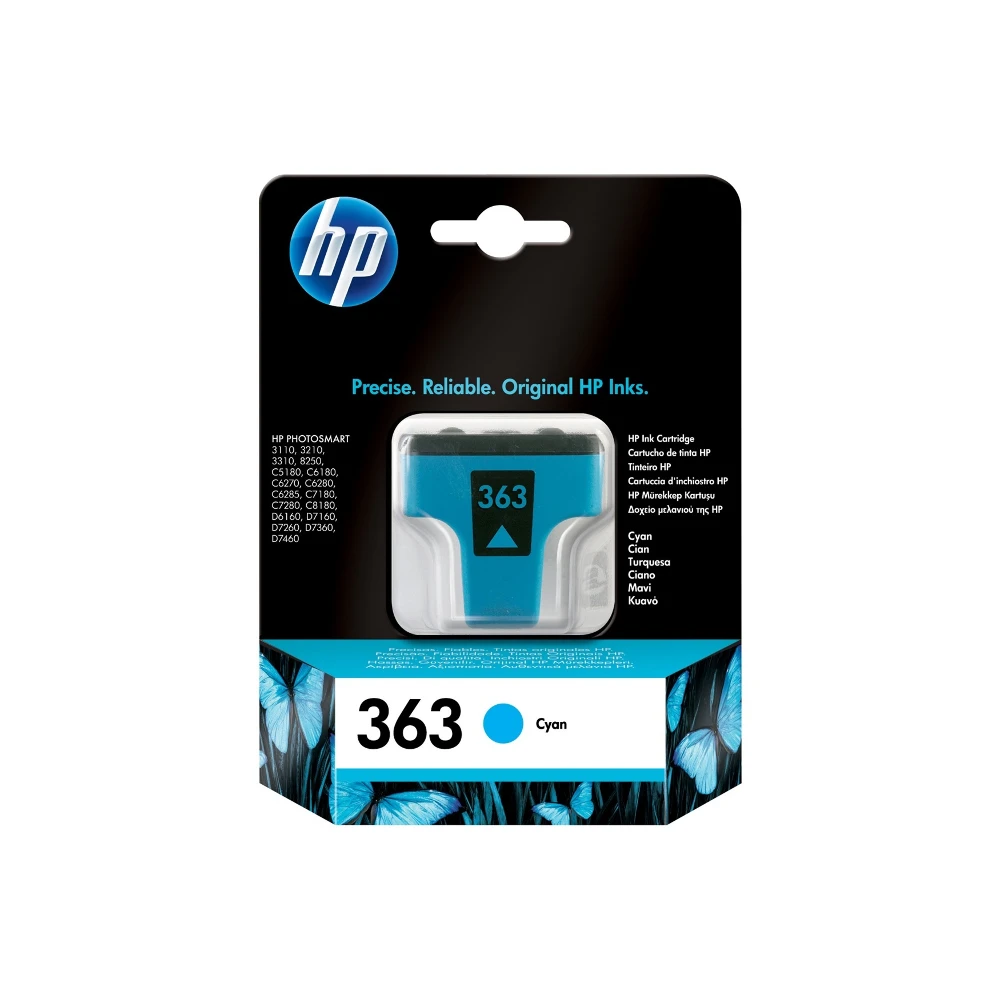 HP 363 Cyan Original Ink Cartridge HP 363. Colour ink page yield: 400 pages, Printing colours: Cyan, Quantity per pack: 1 pc(s) Original HP inks provide vivid, consistent colour for true-to-life photos and crisp, laser-quality documents. The inks are formulated to resist fading, smudging & bleeding – and are specially designed for use in your HP printer.