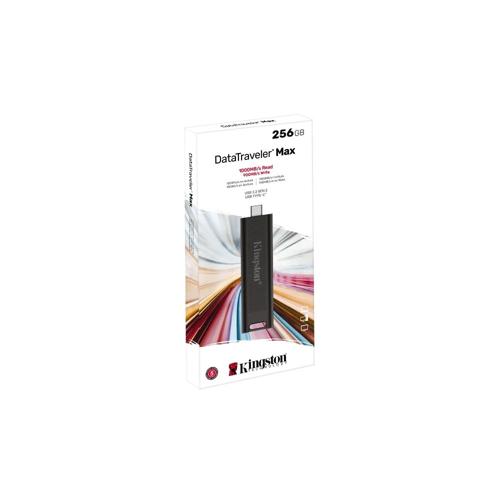Kingston Technology DataTraveler 256GB Max 1000R/900W USB 3.2 Gen 2. Capacity: 256 GB, Device interface: USB Type-C, USB version: 3.2 Gen 2 (3.1 Gen 2), Read speed: 1000 MB/s, Write speed: 900 MB/s. Form factor: Slide. Weight: 12 g. Product colour: Black