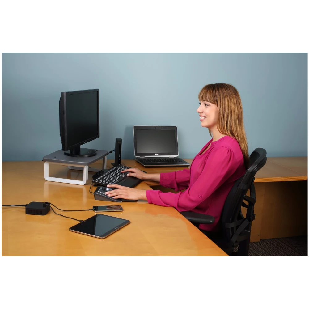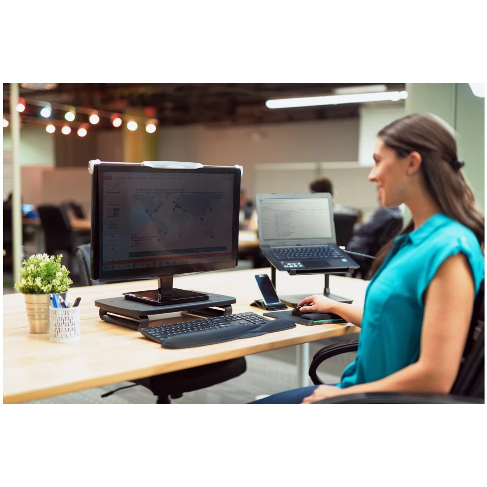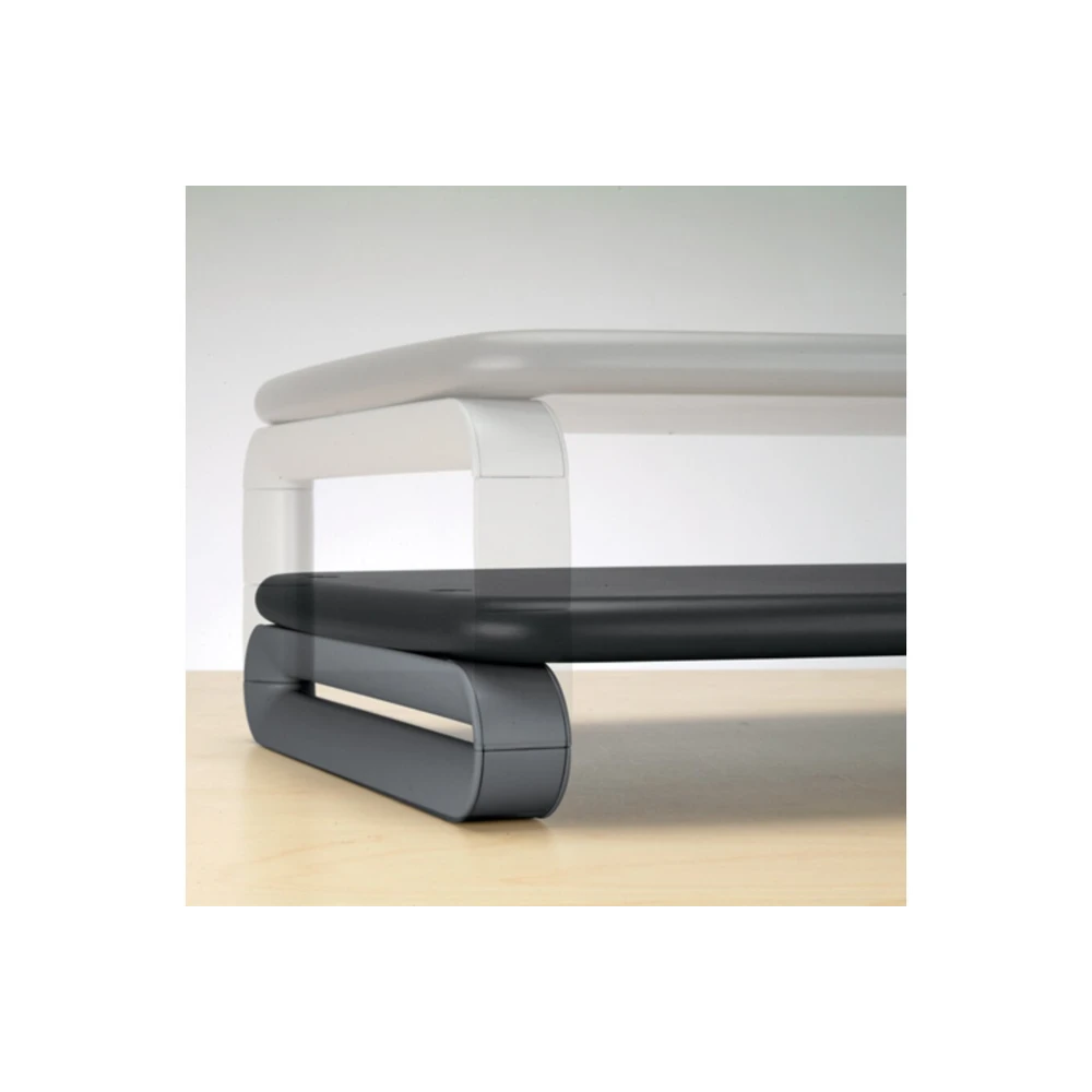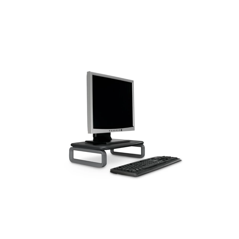 Monitor Stand Plus with the SmartFit® system adjusts monitor height to your optimal viewing angle to help to reduce eye and neck strain. Expands usable desk space by allowing storage underneath platform. 2-year warranty and free technical support.