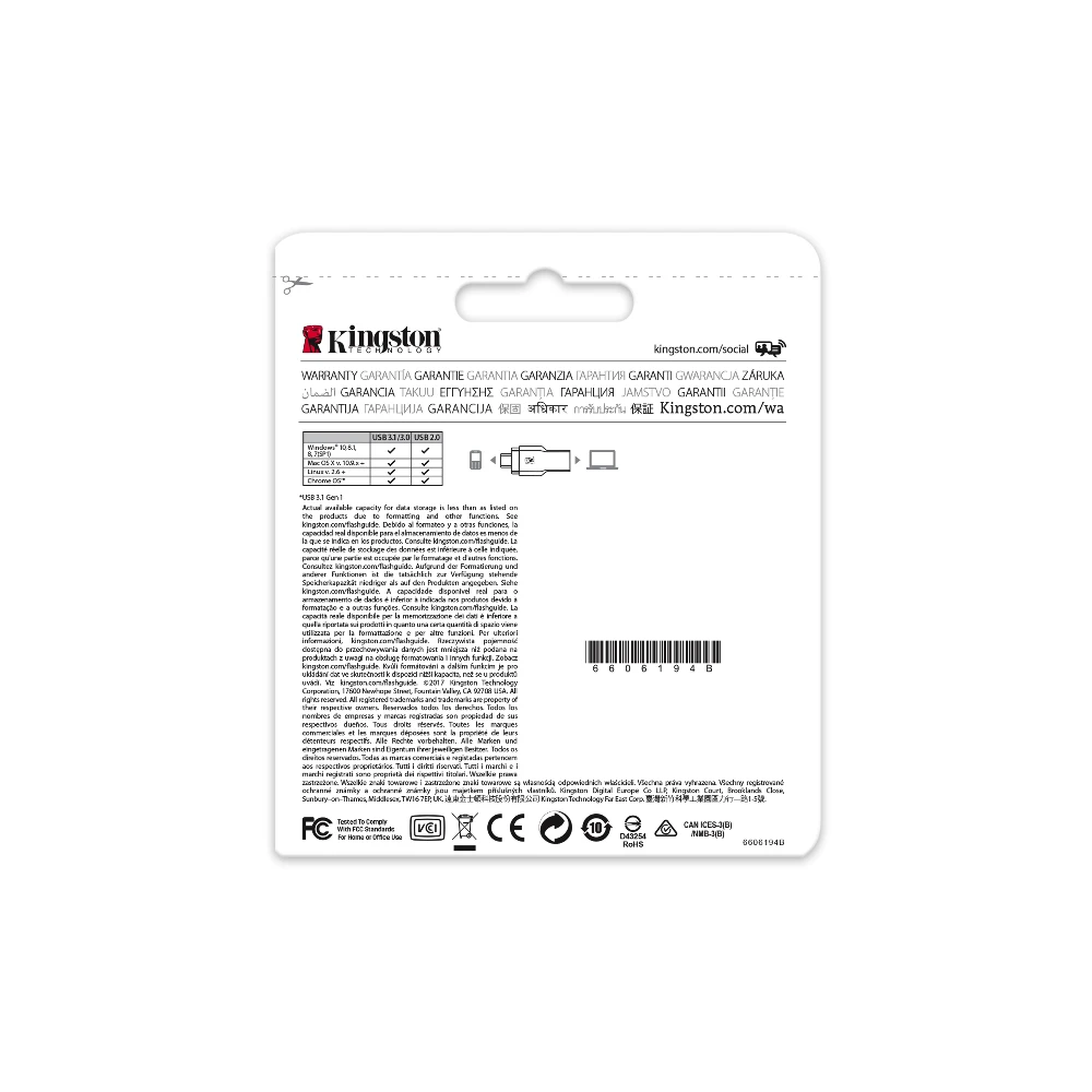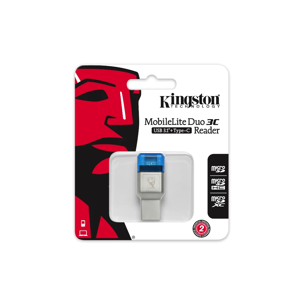 MobileLite Duo 3C is compliant with the USB 3.1 Gen 1* (USB 3.0) specification and delivers incredible performance to save time when transferring videos, photos and other large file sizes. It is backwards compatible with USB 2.0 ports to allow users to migrate to USB 3.0 in the future, using one card reader. MobileLite Duo 3C is backed by a two-year warranty, free technical support and legendary Kingston® reliability.