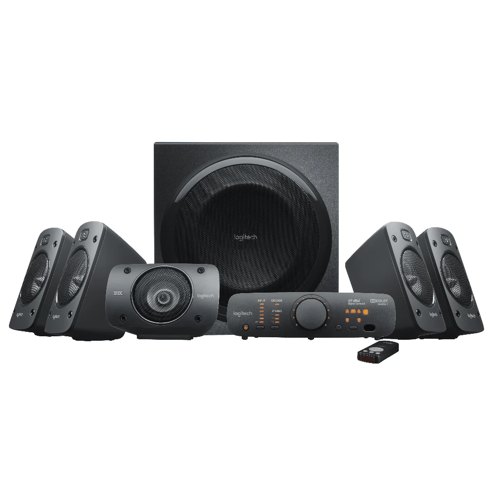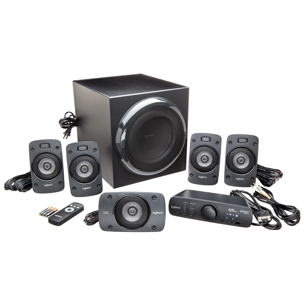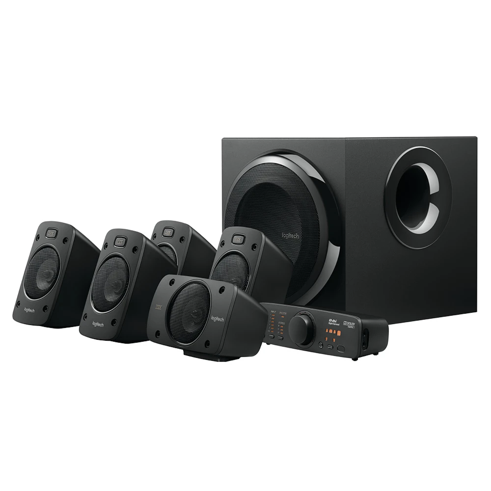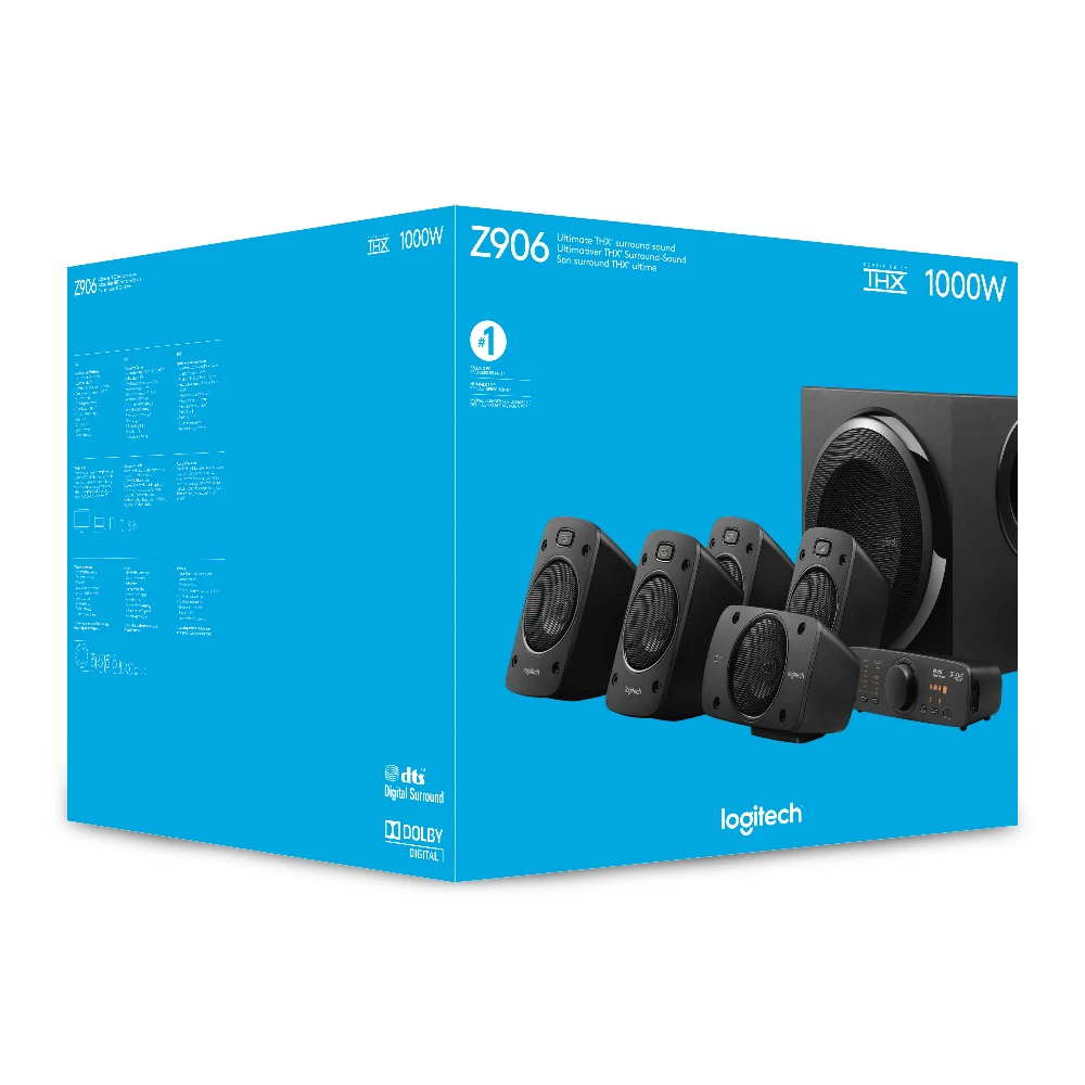 Logitech® Surround Sound Speakers Z906. This 5.1 system delivers 500 watts (RMS) of thunderous audio, plus THX® Certification and onboard 5.1 digital decoding for immersive surround sound.