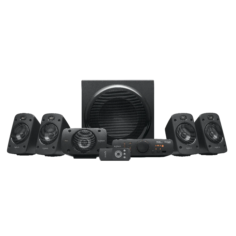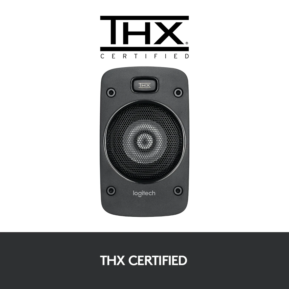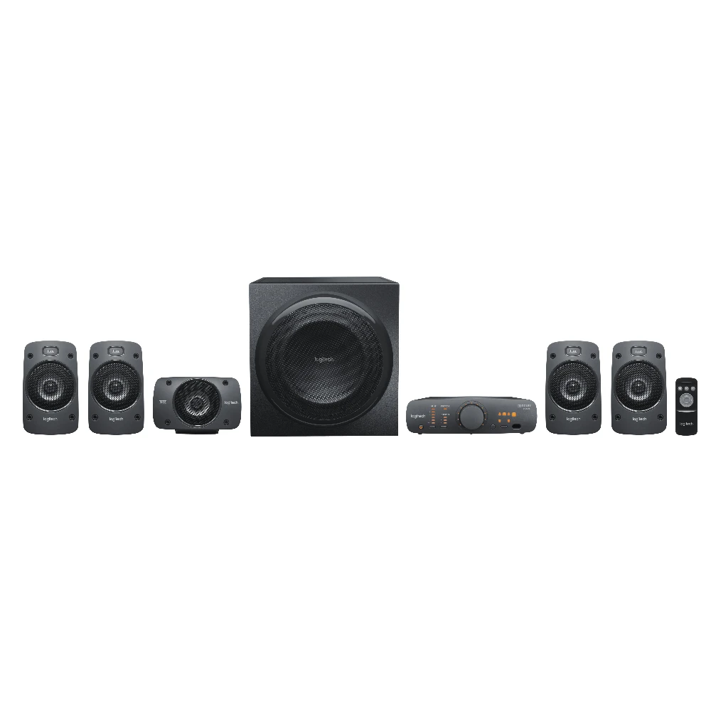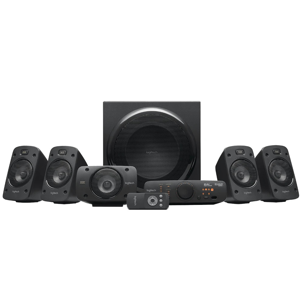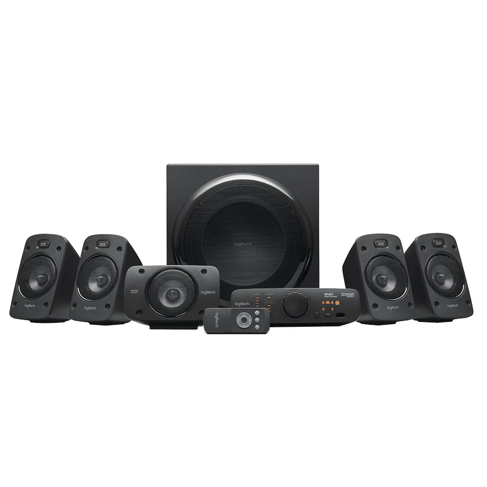 Logitech® Surround Sound Speakers Z906. This 5.1 system delivers 500 watts (RMS) of thunderous audio, plus THX® Certification and onboard 5.1 digital decoding for immersive surround sound.