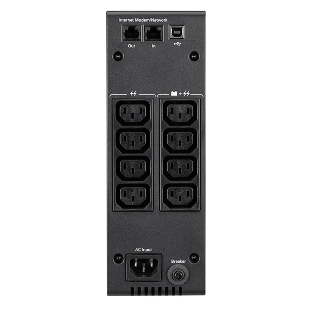 Eaton 5S 1500i. Output power capacity: 1.5 kVA, Output power: 900 W, Input operation voltage (min): 175 V. AC outlet types: C13 coupler, Power plug: C14 coupler, AC outlets quantity: 8 AC outlet(s). Battery technology: Sealed Lead Acid (VRLA), Typical backup time at half load: 11 min. Form factor: Tower, Product colour: Black, Safety: IEC/EN 62040-1, IEC/EN 62040 -2, CB, CE. Width: 87 mm, Depth: 382 mm, Height: 250 mm