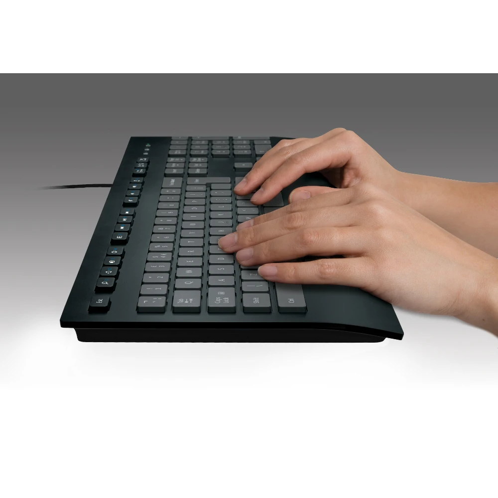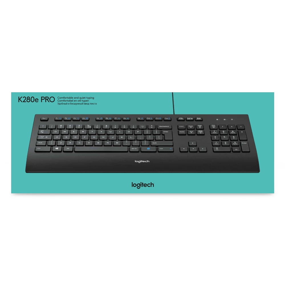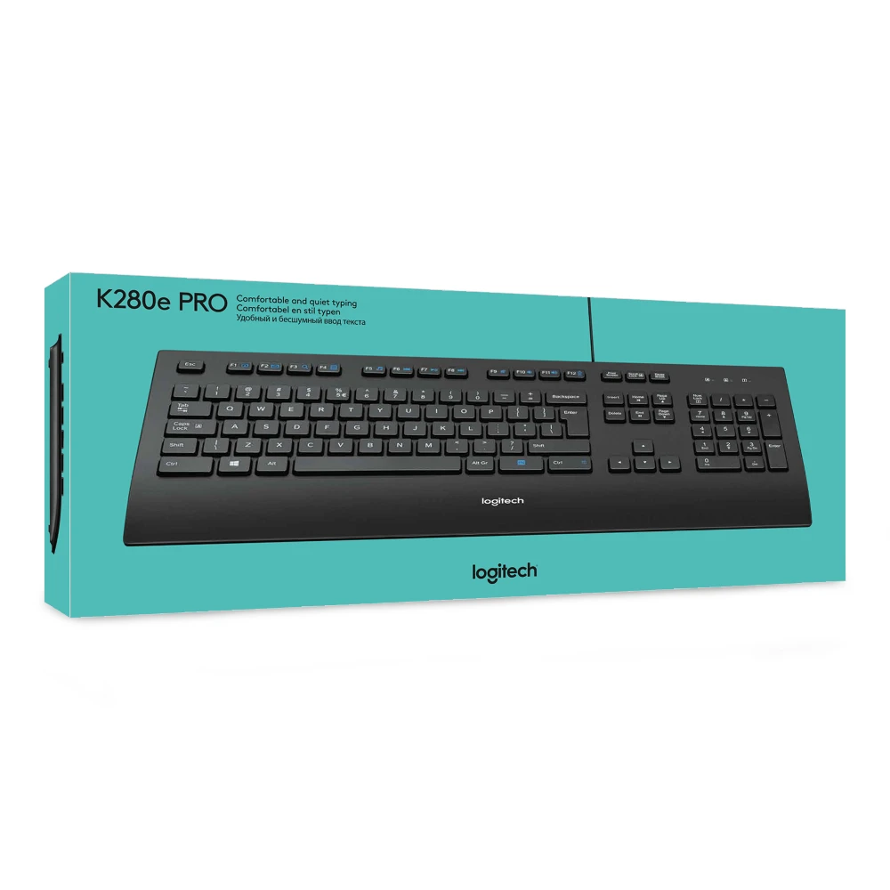 The Logitech Corded Keyboard K280e provides businesses quality and value with a durable and comfortable design that can handle years of heavy office use.