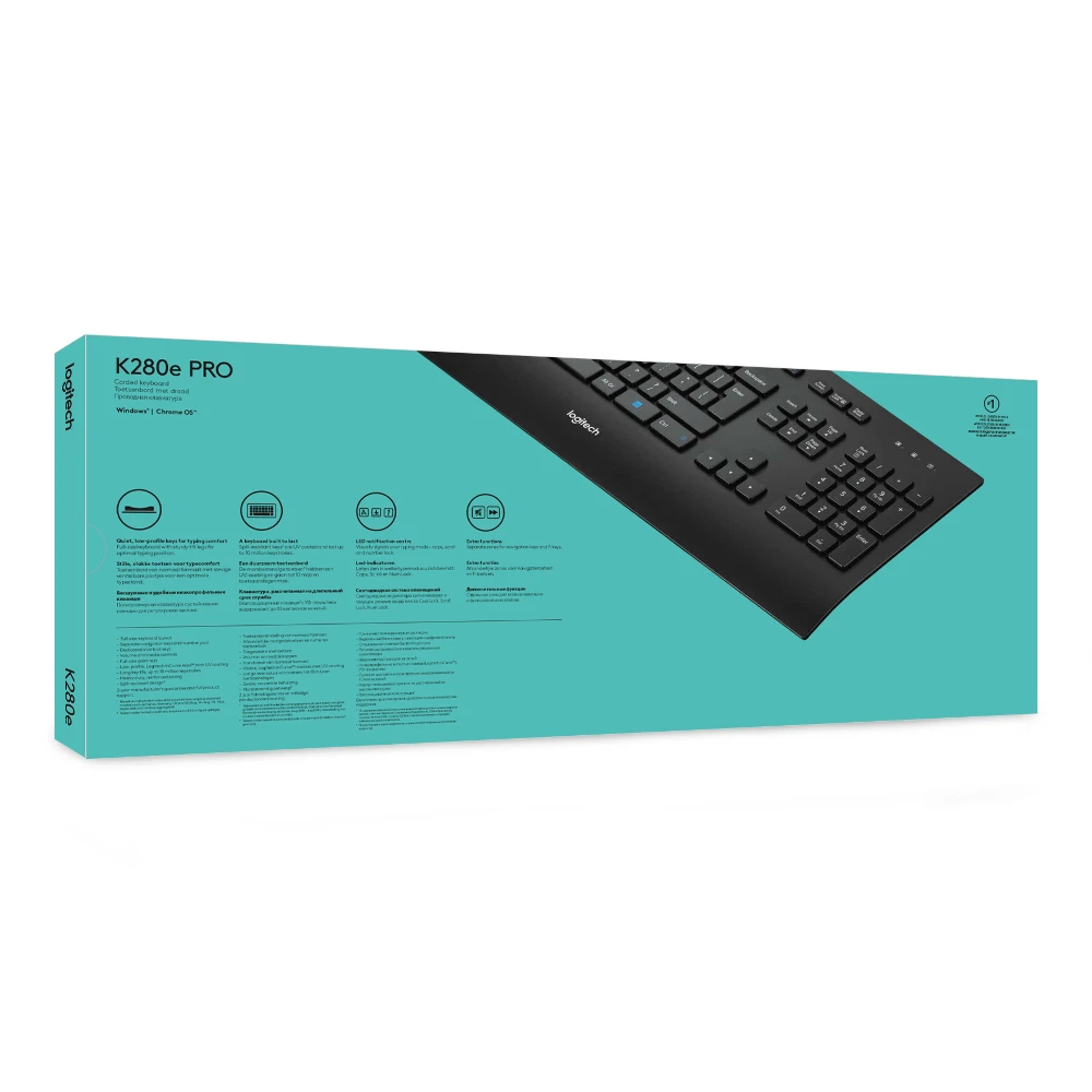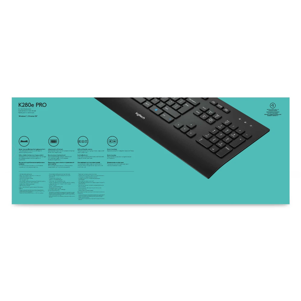 The Logitech Corded Keyboard K280e provides businesses the perfect balance of quality and value. With a reinforced chassis, sturdy tilt legs, and spill-resistant structure, the enterprise-grade K280e keyboard is built for years of heavy office use. The low-profile, nearly-silent keys are designed to withstand up to 10 million keystrokes and are printed with padded printing and a UV coating that prevents the letters and numbers from wearing down over time. A full-size palm rest and smooth-typing key action make this sleek, modern keyboard comfortable for all-day use and a favorite among your workforce as well.