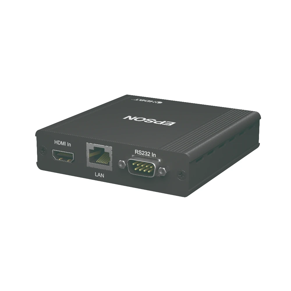 Epson HDBaseT Transmitter ELPHD01, RJ-45, HDMI, RS-232 Epson ELPHD01. Type: AV transmitter, Product colour: Black, Compatible products: EB-G6900WU, EB-Z10000U, EB-Z10005U, EB-Z9870U, EB-Z9875U, EB-Z9750U, EB-Z11000W, EB-Z9900W,.... Connectivity technology: Wired, Serial interface type: RS-232. Quantity per pack: 1 pc(s), Package width: 75 mm, Package depth: 335 mm. Products per pallet: 264 pc(s), Pallet gross length: 120 cm, Pallet gross width: 80 cm
