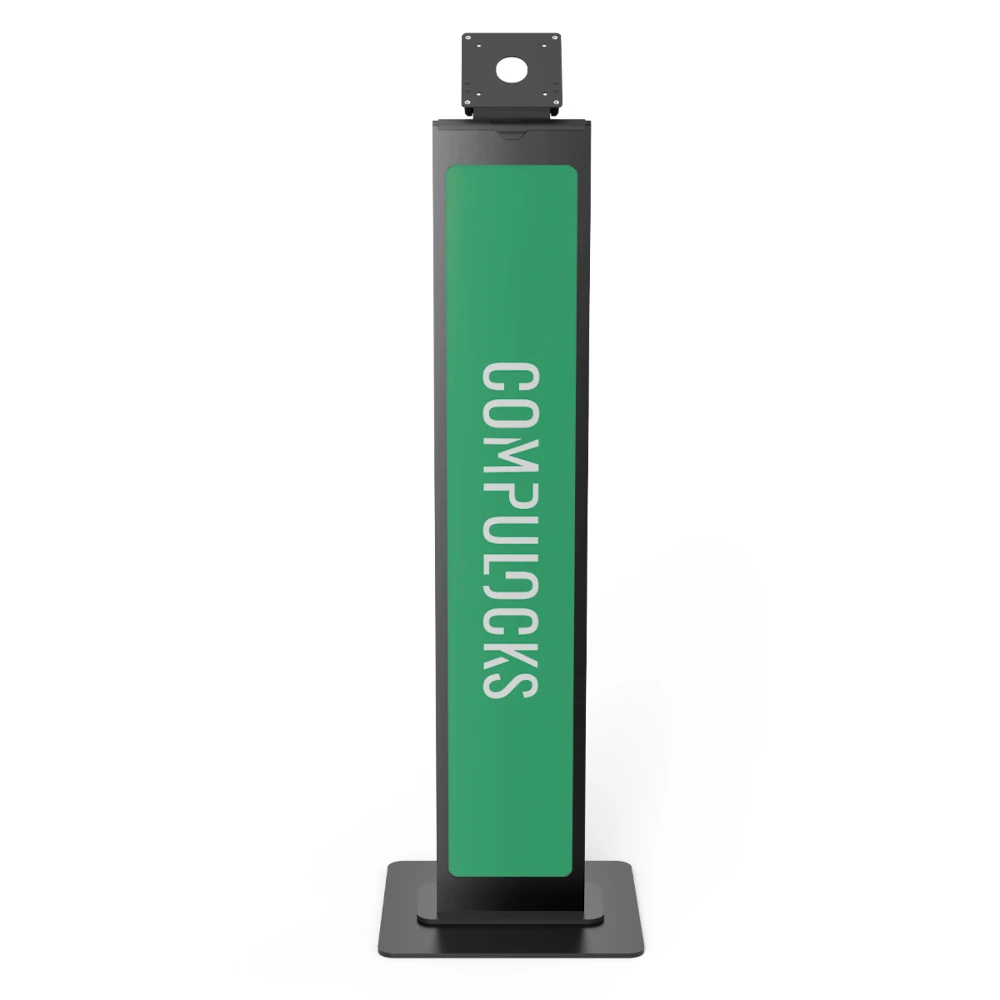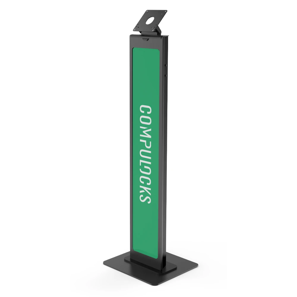 Compulocks Brand-able Floor Stand is an enclosure stand with space allowing you to put a custom message or branded panel making it a great display solution for stand-alone environments.
