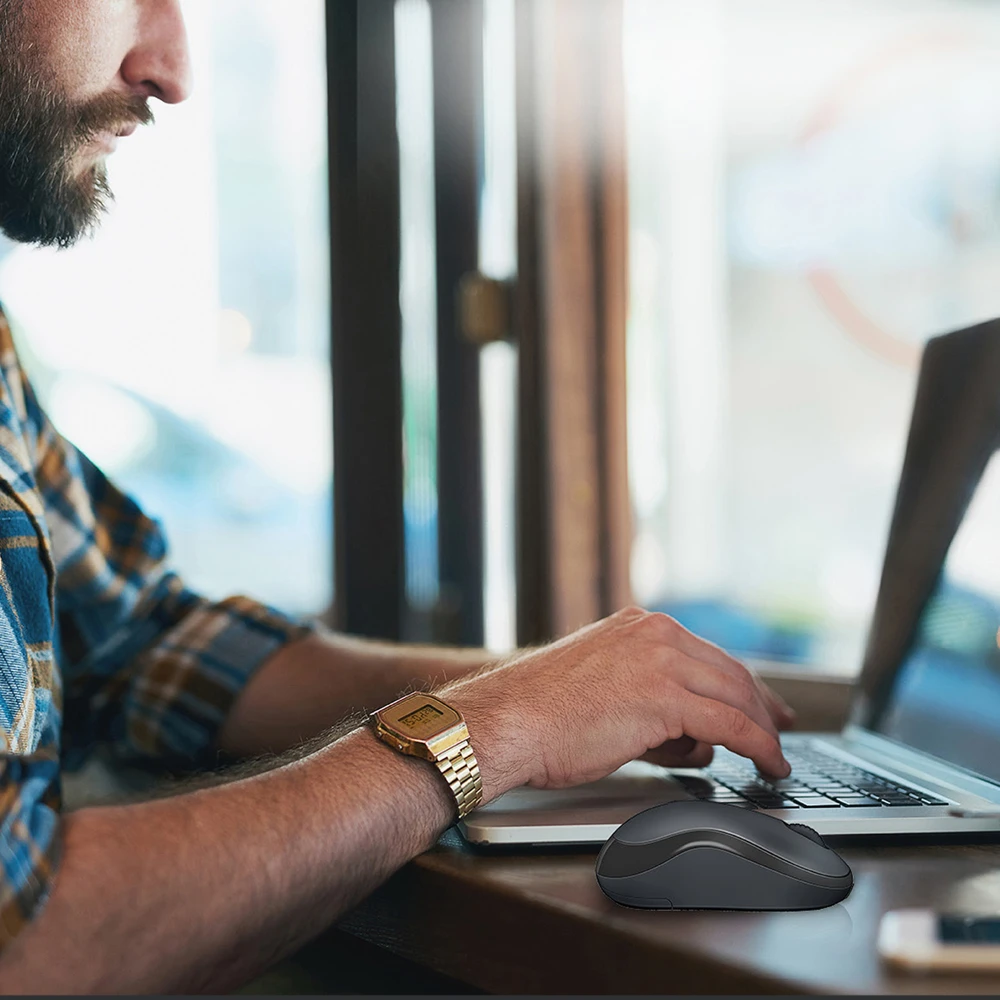*Sound level comparison with Logitech M170. Measured by an independent lab and verified by Quiet Mark™. **Actual battery life and wireless range may vary based on your use. With the same click feel and 90% noise reduction* compared to classic mice, M220 SILENT offers a quiet experience for yourself and those around you. It has a long-lasting 18-month battery life with auto-sleep and a powerful 10-metre wireless range** with 128-bit encryption between the mouse and the receiver. Plus, its small size is perfect to toss in a bag and go. Just plug the tiny USB receiver and it works with Windows®, Mac, ChromeOS™ or Linux®. Finally, the Logitech® Advanced Optical Tracking is designed for smooth and precise moves on almost any surface.