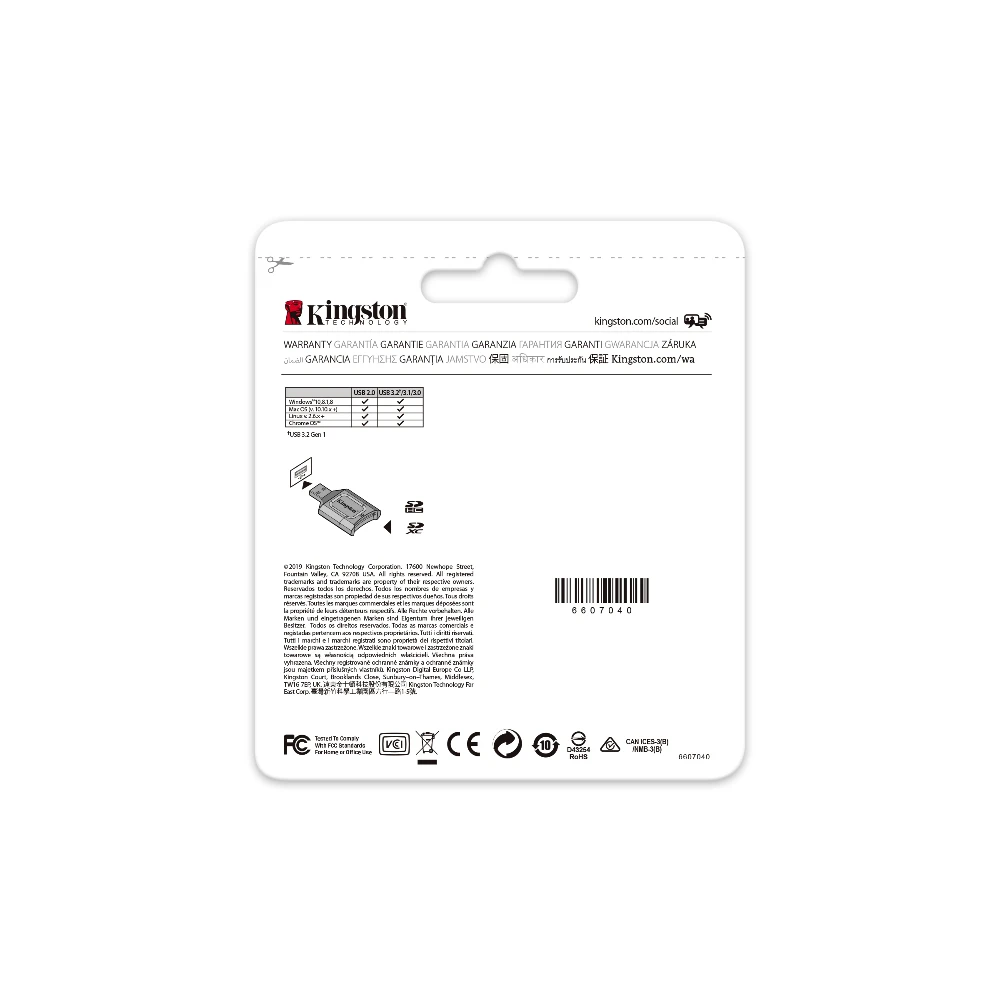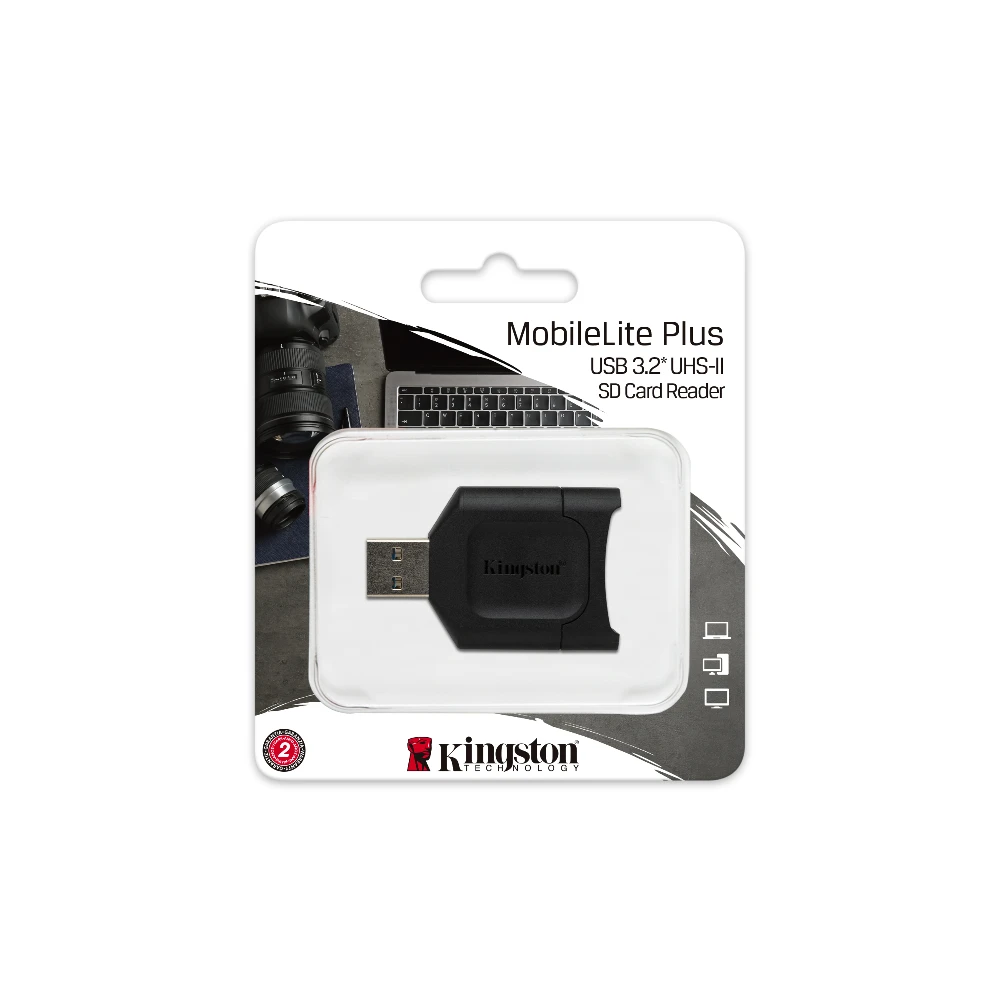 USB A, USB 3.2 Gen 1, UHS-II, 11 g Kingston Technology MobileLite Plus. Compatible memory cards: SD, Product colour: Black, Compatible operating systems: Windows 10, Windows 8.1, Windows 8, Mac OS X v. 10.10.x+, Linux v.2.6.x+, Chrome OS. Interface type: USB 3.2 Gen 1 (3.1 Gen 1) Type-A. Width: 51.8 mm, Depth: 33.5 mm, Height: 9 mm. Quantity per pack: 1 pc(s) Next-Level Speed and Performance