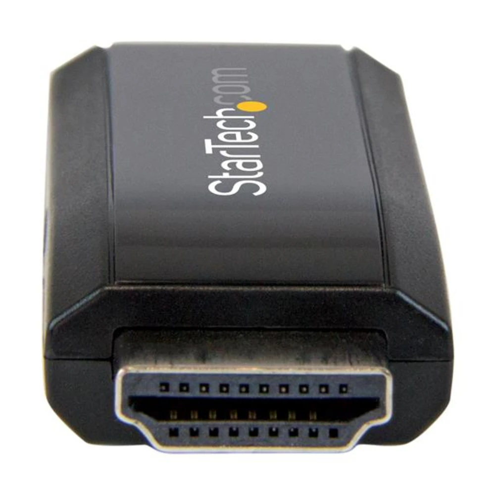 StarTech.com HDMI to VGA Converter with Audio - Compact Adapter - 1920x1200 StarTech.com HDMI to VGA Converter with Audio - Compact - 1920x1200. Converter type: Active video converter, Product colour: Black, Certification: CE, FCC, REACH. Maximum video resolution: 1900 x 1200, 1920 x 1200, Video resolutions: 800 x 600,1024 x 768,1280 x 1024,1280 x 720,1280 x 768,1280 x 800,1280 x 960,1400 x 1050,1600 x..., Supported video modes: 1080p, 720p. Audio output channels: 2.0 channels. Host interface: HDMI, Output interface: VGA + 3.5 mm. Width: 21 mm, Depth: 62.3 mm, Height: 13 mm This highly-portable adapter is the ideal travel companion for your Chromebook or Ultrabook laptop