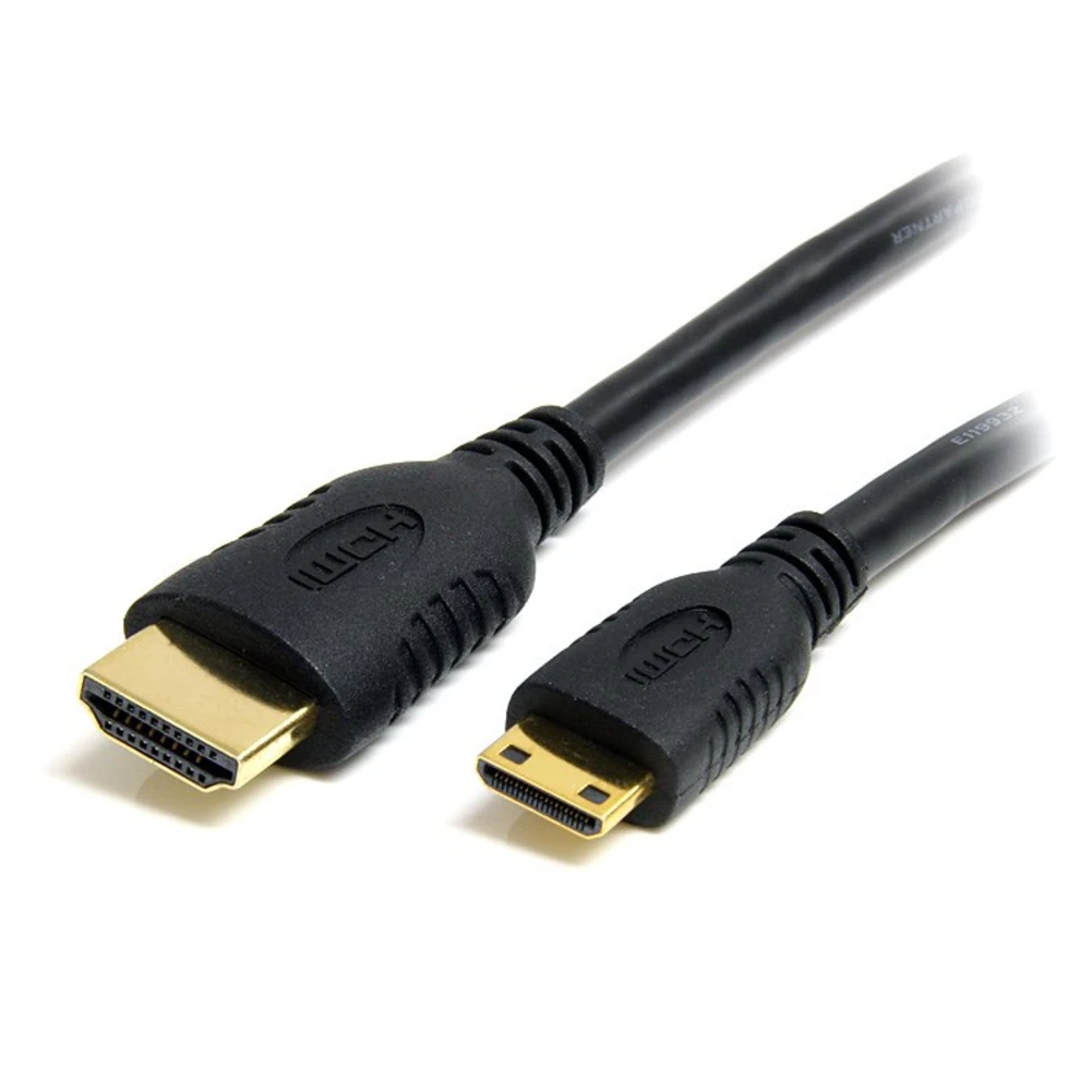 StarTech.com 50cm Mini HDMI to HDMI Cable with Ethernet - 4K 30Hz High Speed Mini HDMI to HDMI Adapter Cable, Mini HDMI Type-C Device to HDMI Monitor/Display, Durable Video Converter Cord (HDACMM50CM) StarTech.com 50cm Mini HDMI to HDMI Cable with Ethernet - 4K 30Hz High Speed Mini HDMI to HDMI Adapter Cable - Mini HDMI Type-C Device to HDMI Monitor/Display - Durable Video Converter Cord. Cable length: 0.5 m, Connector 1: HDMI Type A (Standard), Connector 1 gender: Male, Connector 2: HDMI Type C (Mini), Connector 2 gender: Male, Connector contacts plating: Gold, HDMI version: 1.4b, 3D, Audio Return Channel (ARC), Product colour: Black - 50cm High Speed Mini HDMI to HDMI Cable with Ethernet; 4K (3840x2160p 30Hz/4096x2160p 24Hz)/Full HD (1920x1080p 120Hz)/10.2Gbps bandwidth/8Ch Audio (5.1/7.1/Dolby TrueHD) | HDMI 1.4b - Ultra HD 30AWG Mini HDMI to HDMI adapter cable w/ durable PVC jacket/flexible strain relief/Al-Mylar foil w/braid - Converter cord to connect Mini HDMI Type-C phone/tablet/laptop/camera DSLR to standard HDMI monitor/display | Samsung/Sony/Apple TV - Supports HDMI 1.4 | Male/male - StarTech.com Lifetime Warranty Connect an HDMI® Mini-equipped camera, Smartphone or portable device to your HDMI-capable TV or display