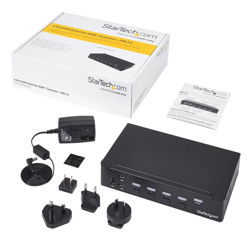 StarTech.com 4 Port HDMI KVM - HDMI KVM Switch - 1080p - USB 3.0 & Audio Support - KVM Video Switch (SV431HDU3A2)