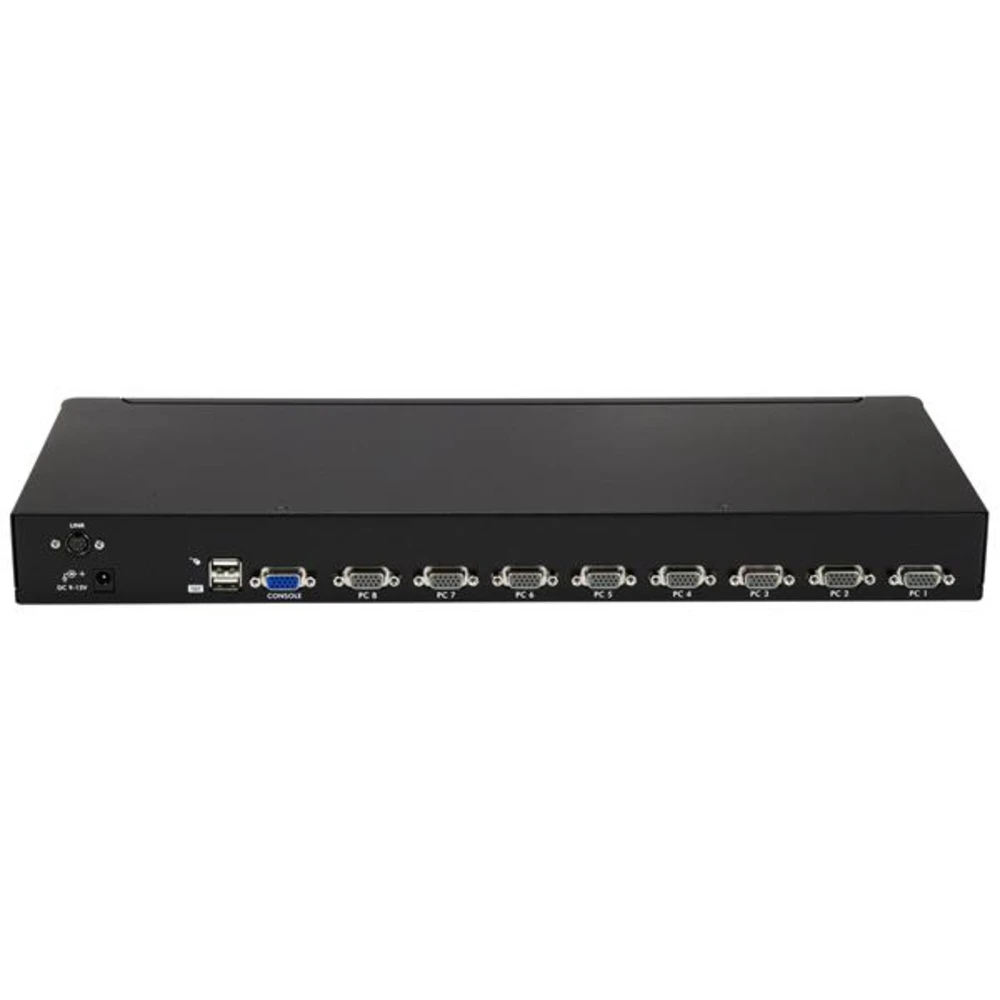 A suitable addition to server room operations, the 8-port switch can be rackmounted into 1U of cabinet space and can be cascaded with multiple KVM switches to enable control of up to 64 computers from this single switch.
