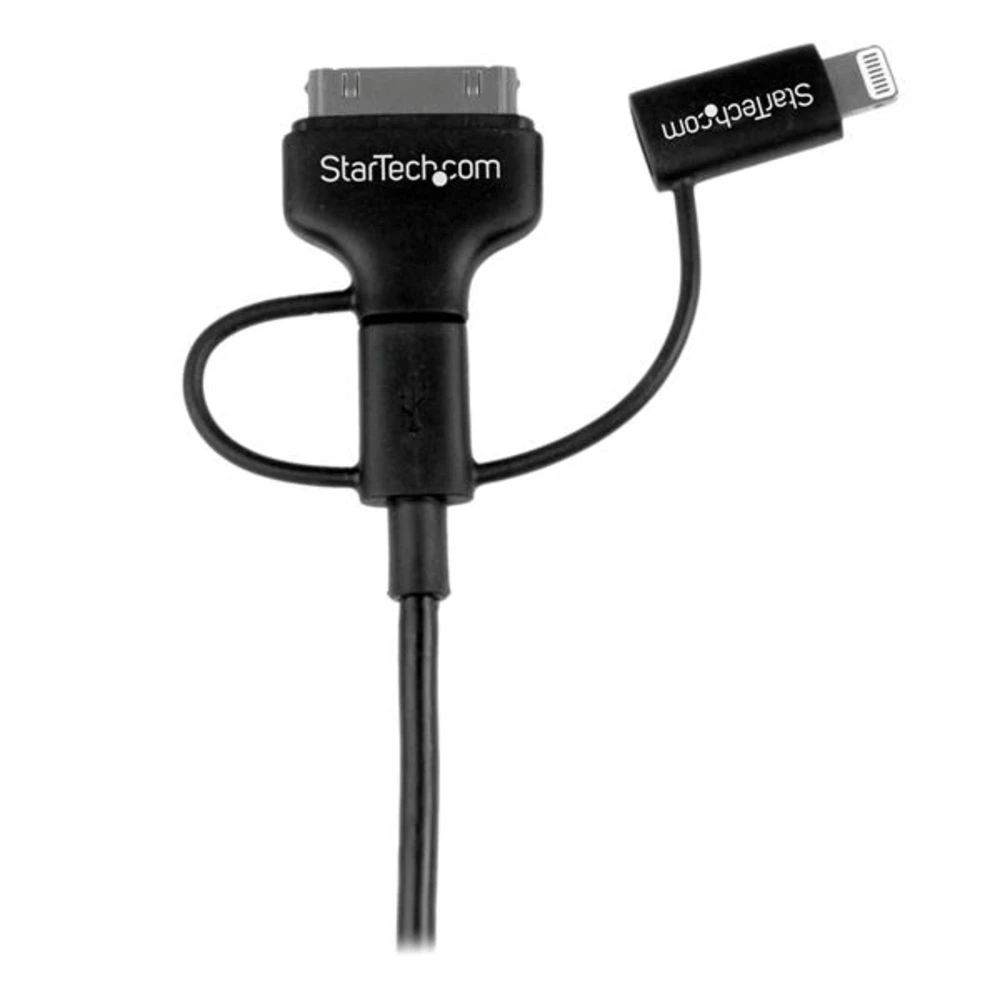 StarTech.com 1 m (3 ft.) 3 in 1 Charging Cable - Multi USB to Lightning or 30-pin Dock or Micro-USB for iPhone / iPad / iPod / Android - Apple MFi Certified - USB 2.0, 1 m, USB A, Micro-USB B, USB 2.0, 480 Mbit/s, Black