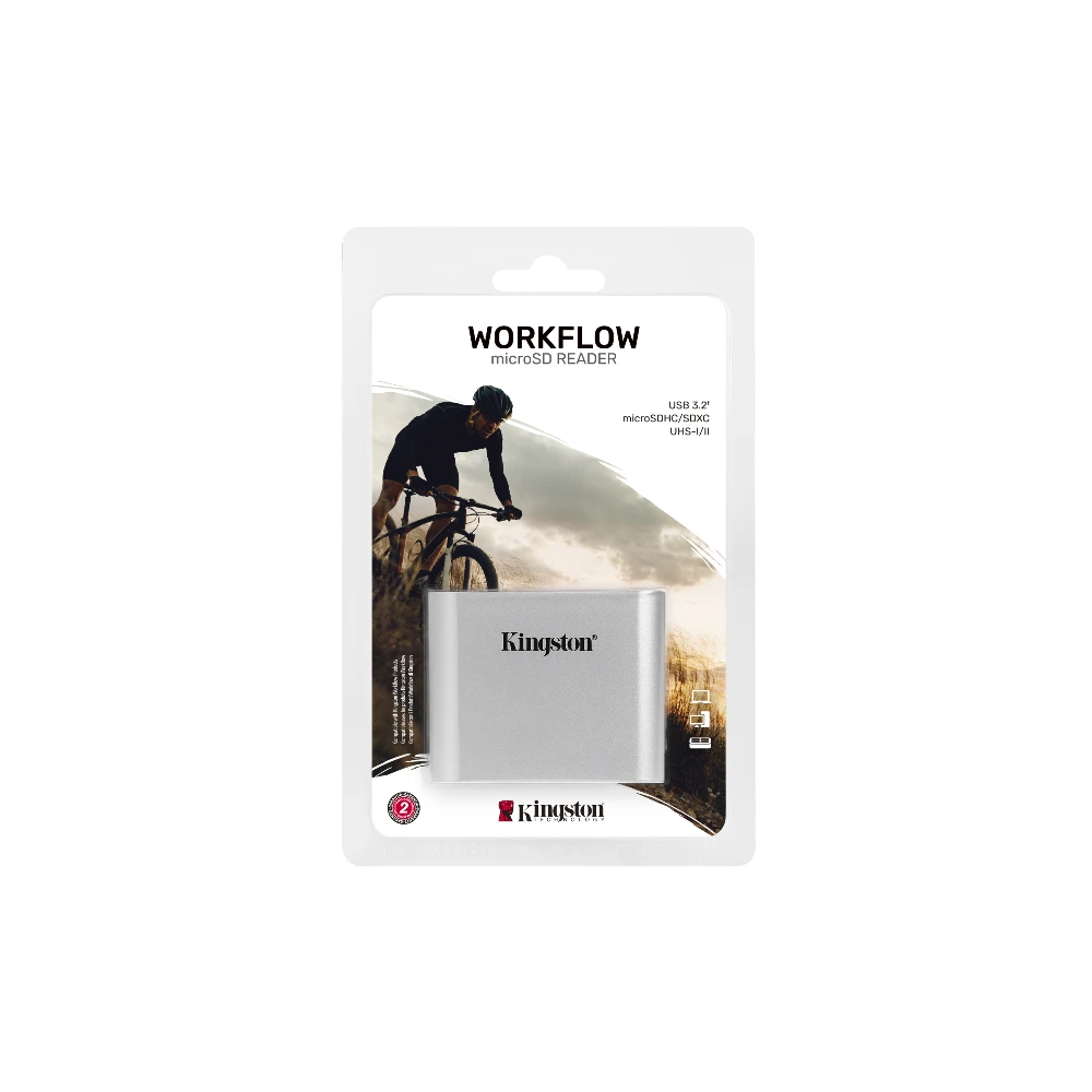 Kingston Technology USB3.2 Gen1 Workflow Dual-Slot microSDHC/SDXC UHS-II Card Reader. Compatible memory cards: MicroSD (TransFlash), MicroSDHC, MicroSDXC. Product colour: Black, Silver, Country of origin: China. Windows operating systems supported: Windows 10, Windows 10 Education, Windows 10 Education x64, Windows 10 Enterprise, Windows 10..., Mac operating systems supported: Mac OS X 10.15 Catalina, Mac OS X 10.15.3 Catalina, Mac OS X 11.0 Big Sur, Mac OS X 12.0 Monterey,.... Width: 16.9 mm, Depth: 62.9 mm, Height: 50 mm. Package width: 101.6 mm, Package depth: 39.9 mm, Package height: 177.8 mm