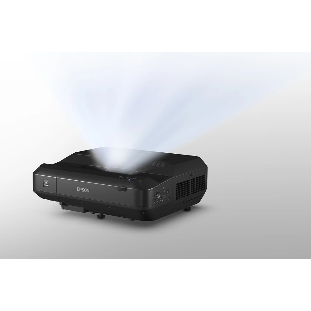 3LCD Technology, 0.67", 4000 Lumen, Full HD, 16:10, Ultra-short-throw, Projection Ratio 0.27 - 0.37:1, 70" - 130" image size, USB 2.0, RS-232C, VGA, HDMI, Black Epson Home Cinema EH-LS100. Projector brightness: 4000 ANSI lumens, Projection technology: 3LCD, Projector native resolution: WUXGA (1920x1200). Light source type: Laser, Service life of light source: 20000 h, Service life of light source (economic mode): 30000 h. Focus: Manual, Fixed focal length: 4.2 mm, Aperture range (F-F): 1.6 - 1.6. Video processing: 10 bit, Colour modes (2D): Bright cinema, Cinema, Dynamic, Video colour modes: Bright cinema, Cinema, Dynamic, Game. Serial interface type: RS-232C, USB connector type: USB Type-A, USB Type-B UST laser projector