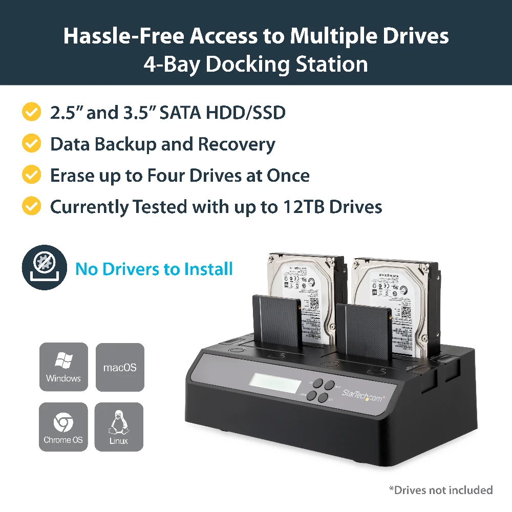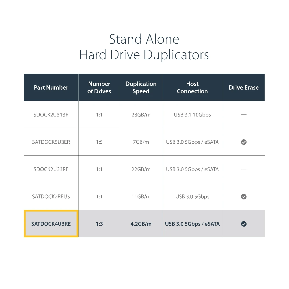 Features Quick and Secure Erase functions and support for IDE hard drives using the included SATA to IDE hard drive adapter (SAT2IDEADP).