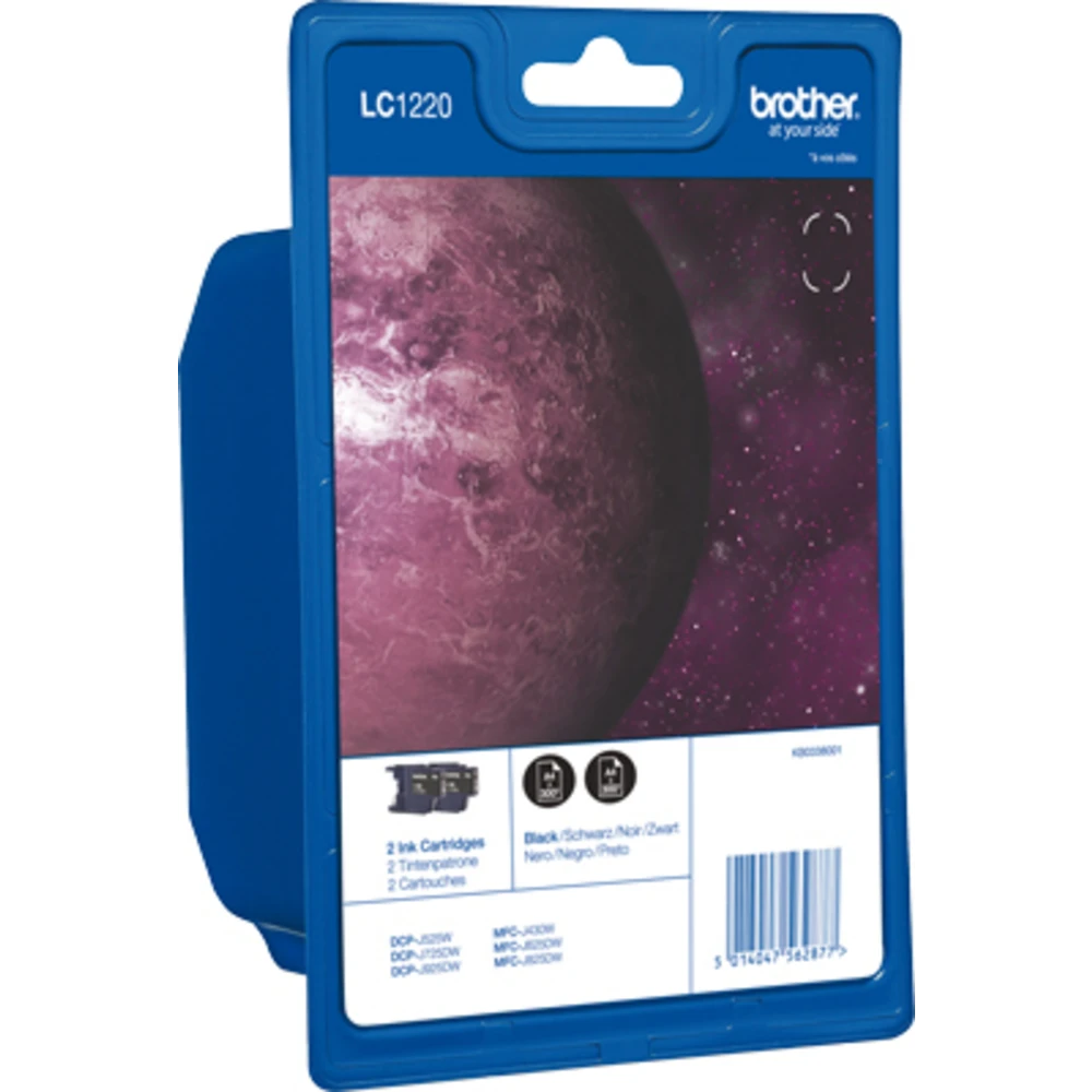 Brother LC-1220BKBP2. Black ink type: Pigment-based ink, Supply type: Multi pack, Printing colours: Black, Quantity per pack: 2 pc(s)