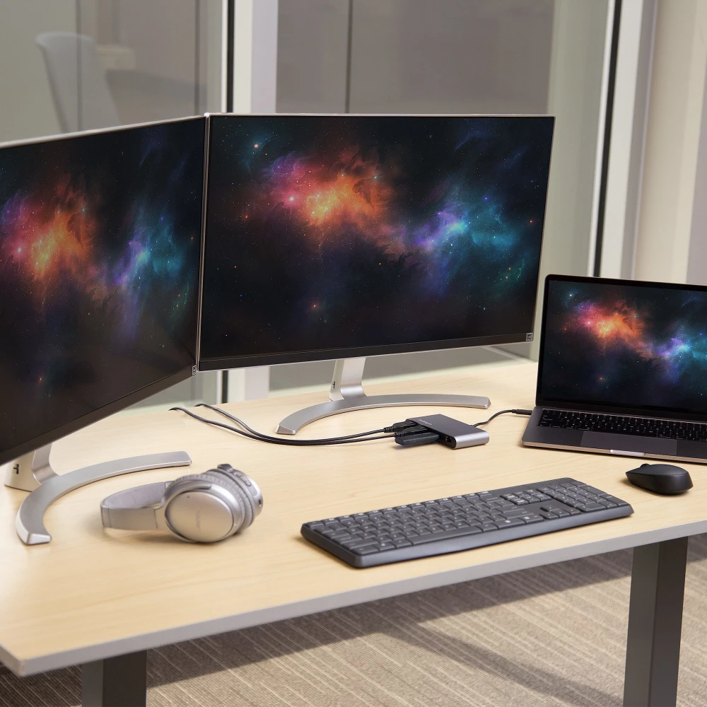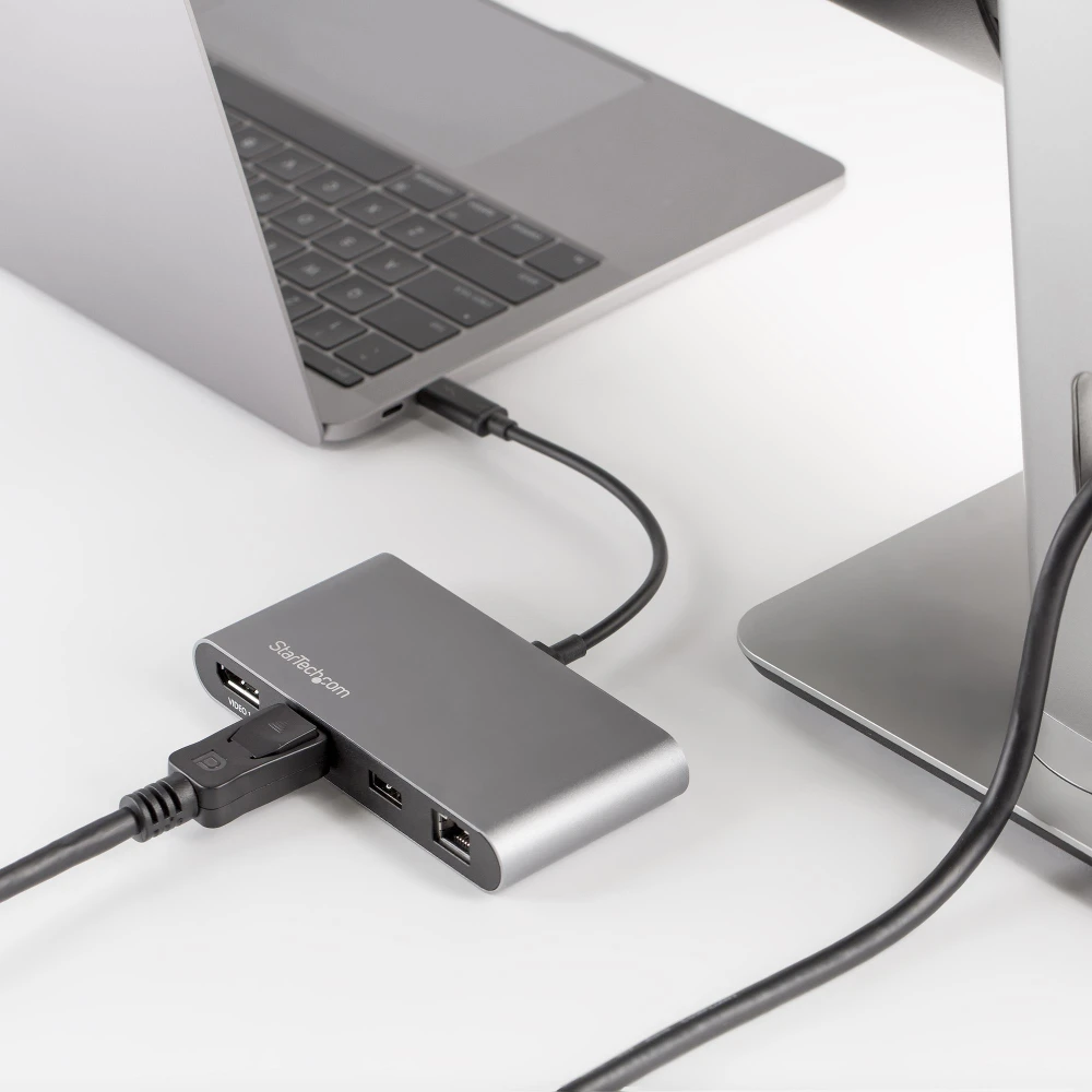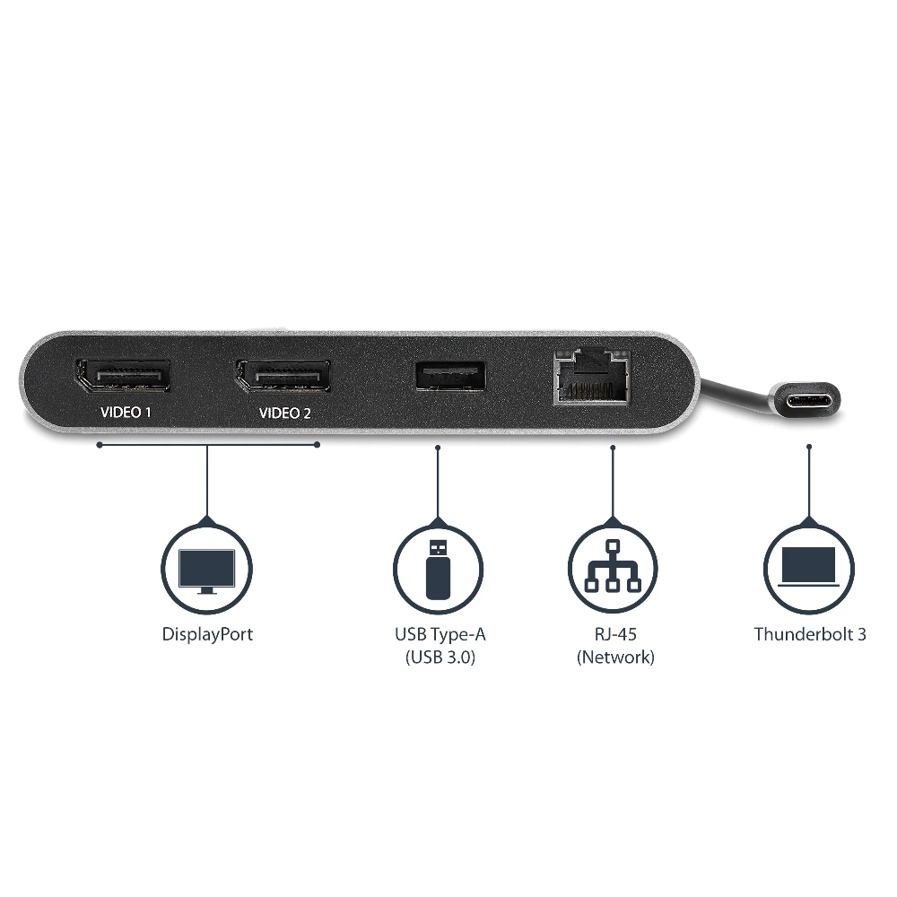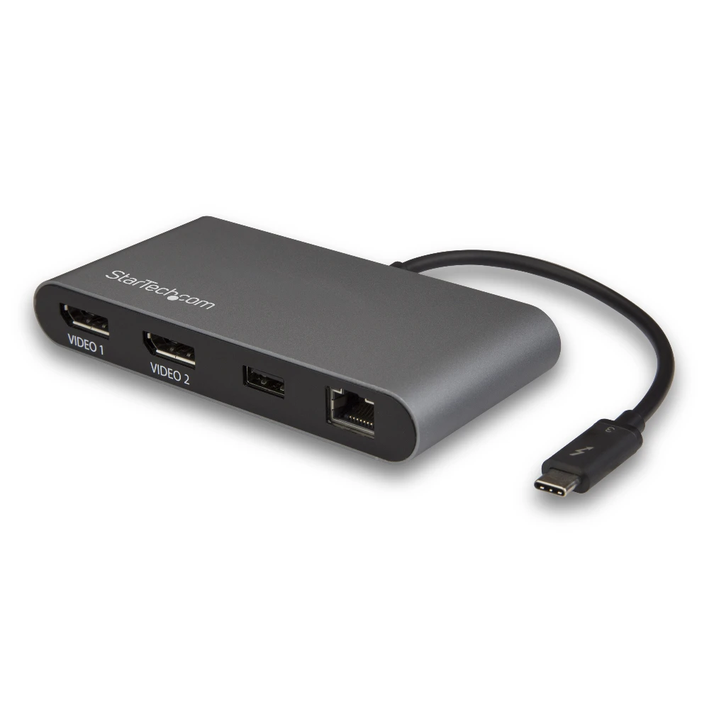 Laptop Docking Station | Mac & Windows® | Bus-Powered | 1x USB-AThe bus-powered Thunderbolt 3™ docking station connects to dual 4K DisplayPort displays, Gigabit Ethernet and a USB 3.0 (Type-A) port. Compatible with macOS and Windows®, it’s the ideal accessory for your Thunderbolt 3 laptop and for flexible setup, the attached USB-C cable has an extended length of (7.9 in. | 20 cm).Create a Dual-4K 60Hz WorkstationGreat for editing 4K video or other Ultra HD tasks, this portable dual DisplayPort docking station supports 40Gbps of throughput and 4K resolution at 60Hz on two DisplayPort monitors, through a single Thunderbolt 3 port.Connect your laptop to:• 2x 4K DisplayPort displays (up to 4096 x 2160p @ 60Hz)OR• 1x 5K display (5120 × 2880 @ 60Hz)Easy Installation & DeploymentSimply connect the TB3 dock to your laptop with included TB3 cable and start working immediately. No time-consuming driver installations are required.The Ports You Need MostTo enhance your productivity, the Gigabit Ethernet port (with PXE Boot and Wake-on-LAN support) ensures reliable wired network access. A USB 3.0 Type-A port, with ample space around it, lets you connect a USB device, like a flash drive, for easy file access.Enhance Productivity and Device Management with the StarTech.com Connectivity Tools ApplicationDeveloped to improve performance and security, StarTech.com Connectivity Tools is the only software suite on the market that works with a wide range of IT connectivity accessories. The software suite includes:•Advanced Windows Layout Utility : To setup and save custom windows layouts.•Mac Address Pass-Through Utility : To improve network security.•USB Event Monitoring Utility : To track and log connected USB devices•Wi-Fi Auto Switch Utility : Enabling users to quickly access faster network speeds via wired LAN.For more information and to download the StarTech.com Connectivity Tools application, please visit: www.StarTech.com/Connectivity-ToolsThe TB3DKM2DP is Thunderbolt Certified, and backed by a StarTech.com 3-year warranty and free lifetime technical support.The StarTech.com Advantage