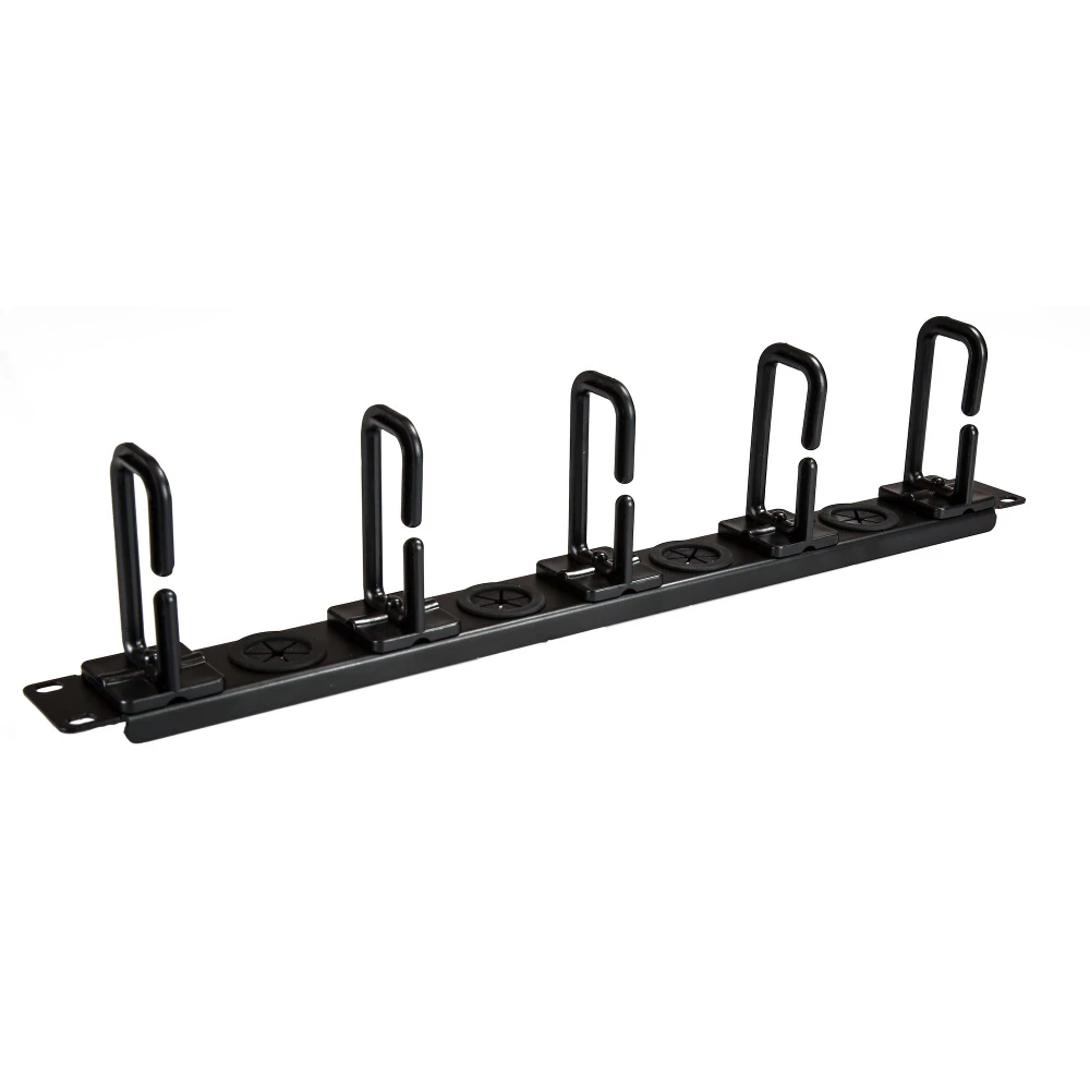The rack-cable management panel makes it easier to organize cables from the front or back of your server rack. It features five conveniently placed D-ring hooks that you can use to hold and guide cable bundles running vertically and horizontally. To bundle and route cables through the panel, the cable manager also features four holes designed to seamlessly route cables in and out of your rack.