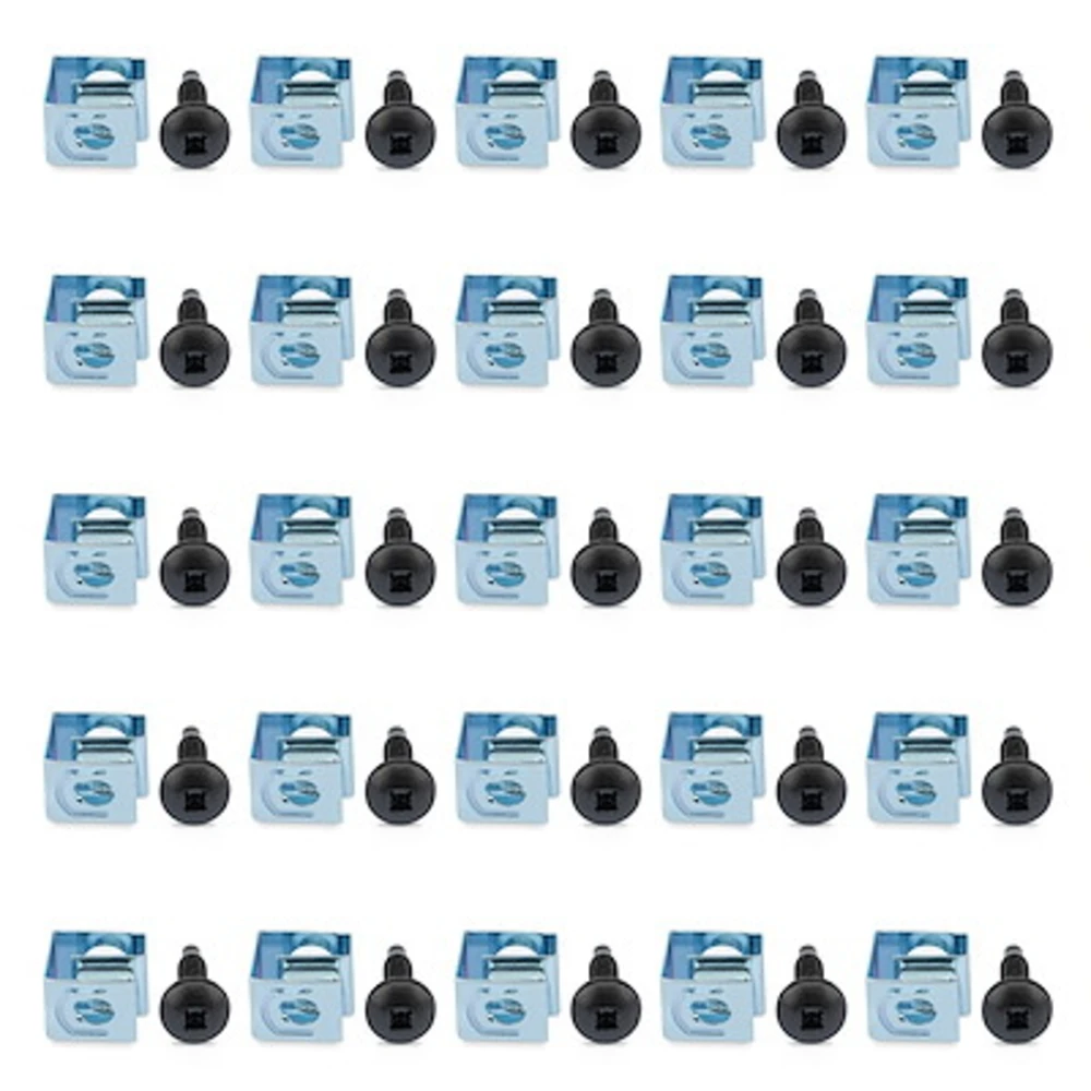 StarTech.com Server Rack Screws and Clip Nuts - 50 pack - 10-32 Screws - Rack Mount Screws - Network Rack Screws - Rack Mount Hardware StarTech.com Server Rack Screws and Clip Nuts - 10-32 - Rack Mount Screws and Slide-On Cage Nuts - 50 Pack. Type: Screw kit, Product colour: Black, Stainless steel, Certification: RoHS. Weight: 386 g. Quantity per pack: 50 pc(s), Package width: 118 mm, Package depth: 220 mm This 50-pack of 10-32 server rack screws and clip nuts are perfect to have on hand for installing rack-mount hardware, such as your server, network or audio/video equipment. The design of the clip nuts makes for easy slide-on installation.