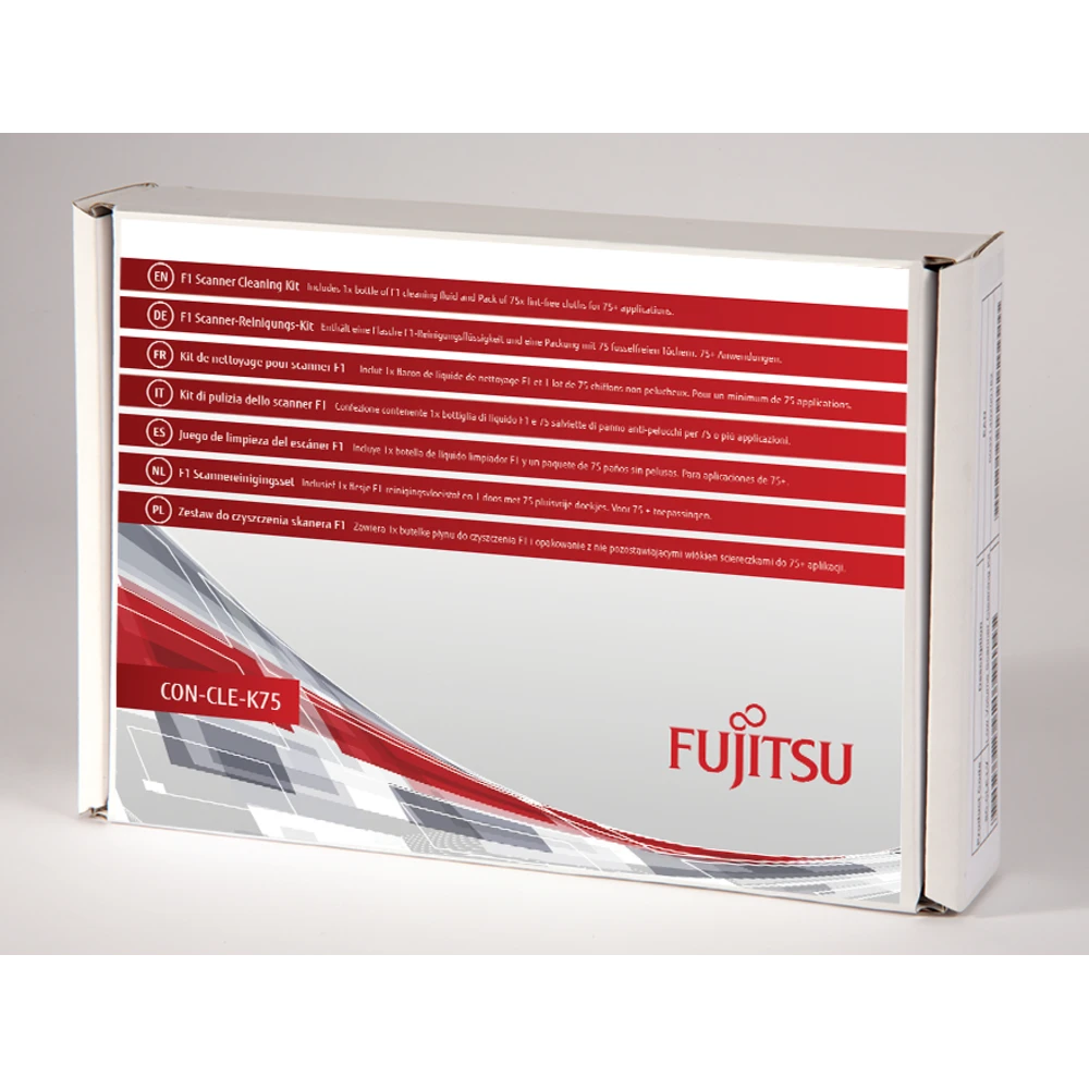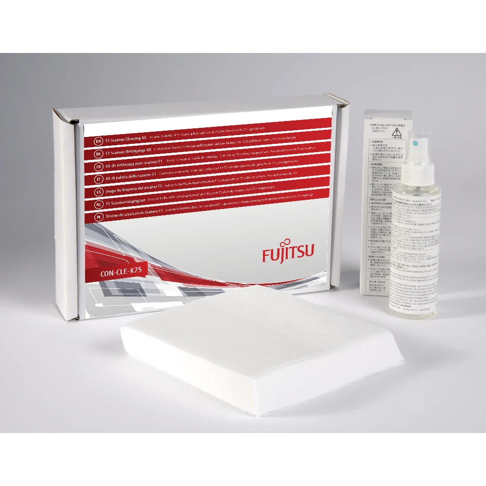 Scanner Cleaning Kits for Low / Mid Volume Production Ricoh F1 Scanner Cleaning Kit. Product type: Equipment cleansing dry cloths, Proper use: Scanner, Product colour: Multicolour. Package type: Box Cleaning Kit, Maintain your scanner for optimum performance with this factory approved cleaning kit. Includes: 1 x Bottle of F1 Cleaning Fluid, 75 x Lint Free Cleaning Cloths. Includes wipes and a specially formulated cleaning fluid that effectively remove dirt, toner, carbon, chemicals from treated papers and other debris from the parts of the scanner that are in continuous contact with paper. Suitable for: fi-6400, fi-6670, fi-6750S, fi-6770, fi-6800, fi-5950, fi-6670A, fi-6770A, fi-4640S, fi-4750C, fi-4750L, fi-5650C, fi-5750C, M4097D, fi-7600, fi-7700.