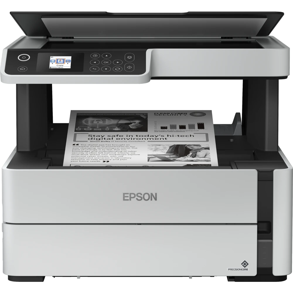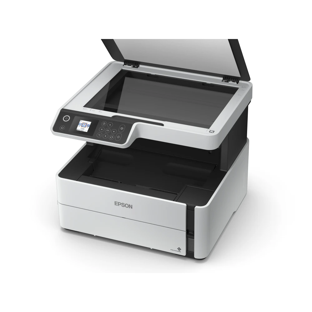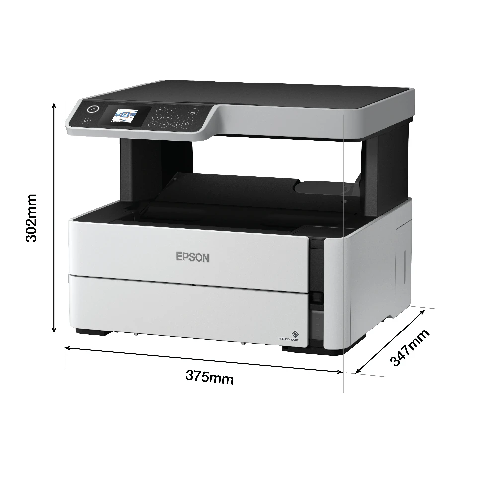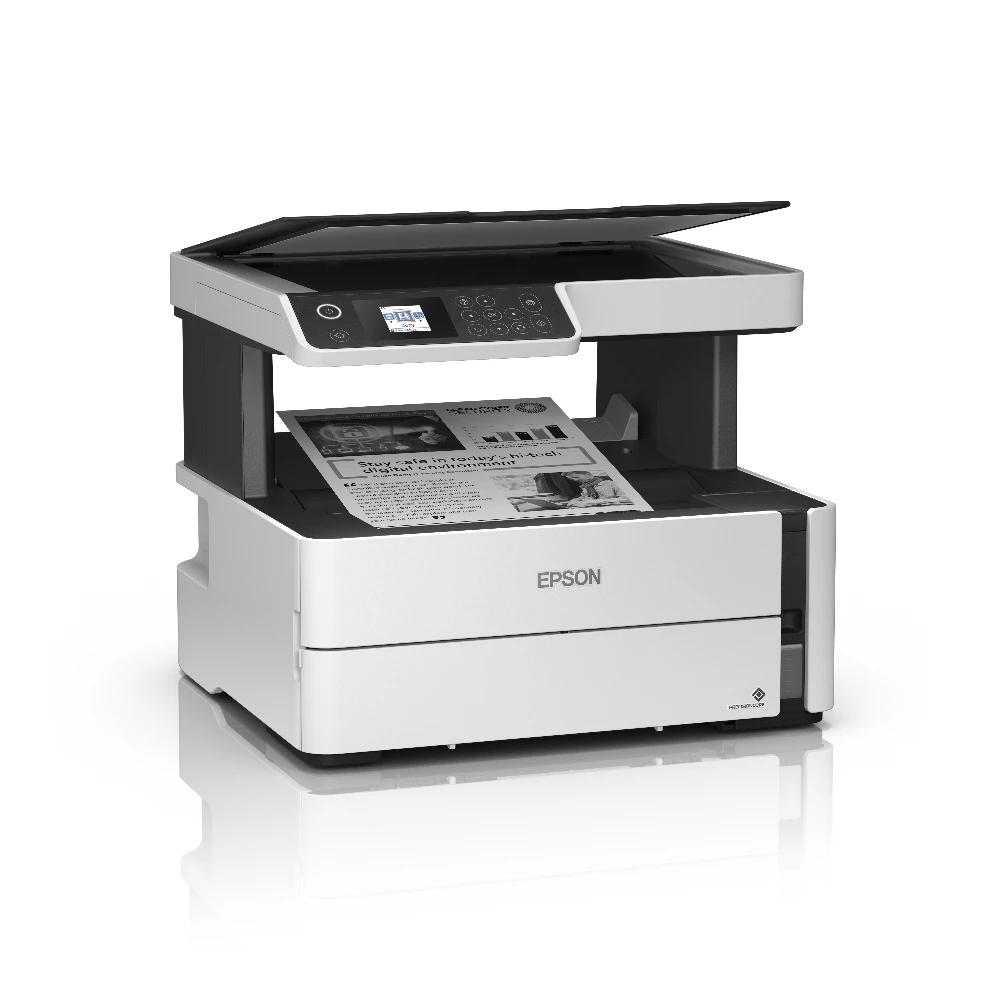 EcoTank ET-M2140 Epson EcoTank ET-M2140. Print technology: Inkjet, Printing: Mono printing, Maximum resolution: 1200 x 2400 DPI. Copying: Mono copying, Maximum copy resolution: 600 x 1200 DPI. Scanning: Colour scanning, Optical scanning resolution: 1200 x 2400 DPI. Maximum ISO A-series paper size: A4. Product colour: Black, Grey Print, copy and scan with this durable, fast and energy-efficient EcoTank with refillable ink tank. A cost-efficient solution, print up to 11,000 pages with the included black ink¹. Select features directly and quickly using the 3.7cm colour LCD screen. Reduce your printing costs
