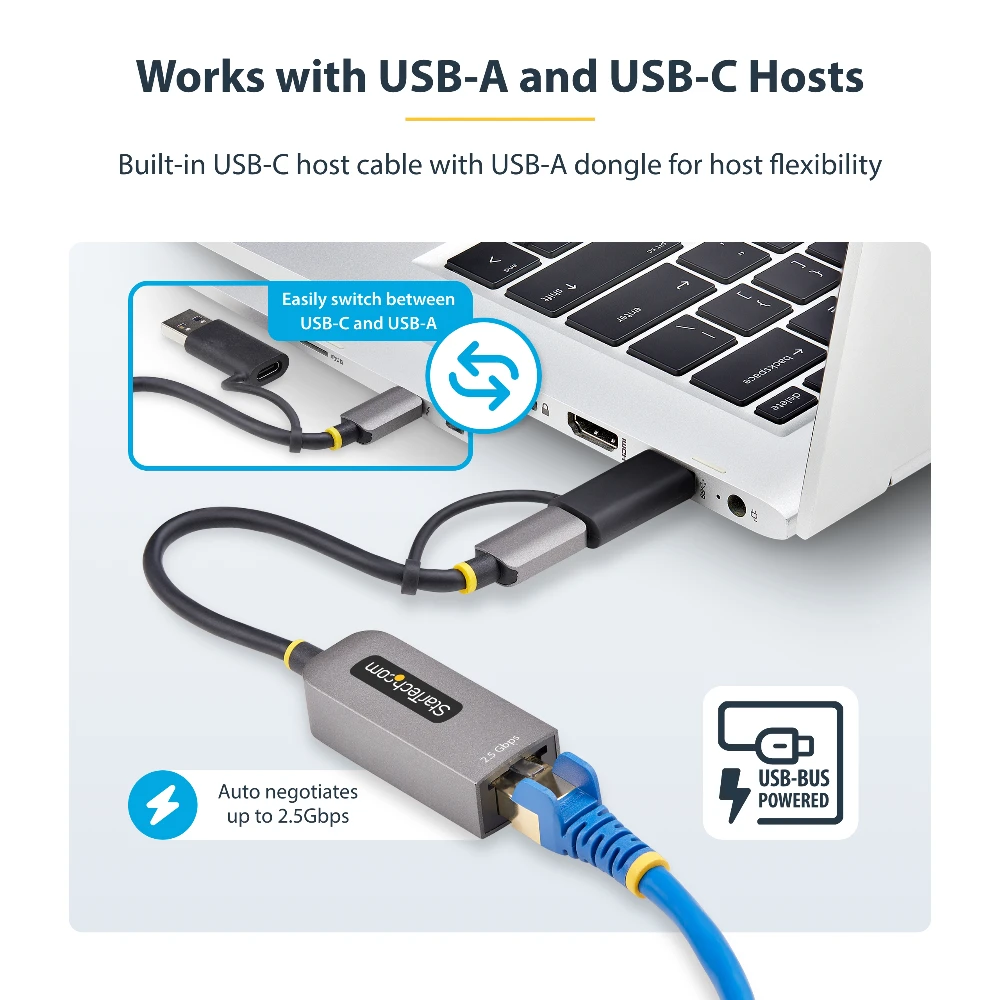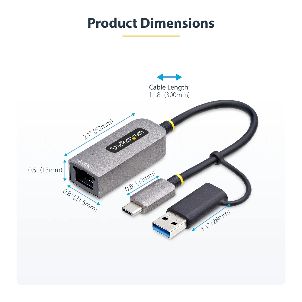 StarTech.com 2.5GbE USB-C to Ethernet Adapter with USB-A Converter, NBASE-T NIC, USB 3.0 Type-C 2.5/1G Multi Speed Network