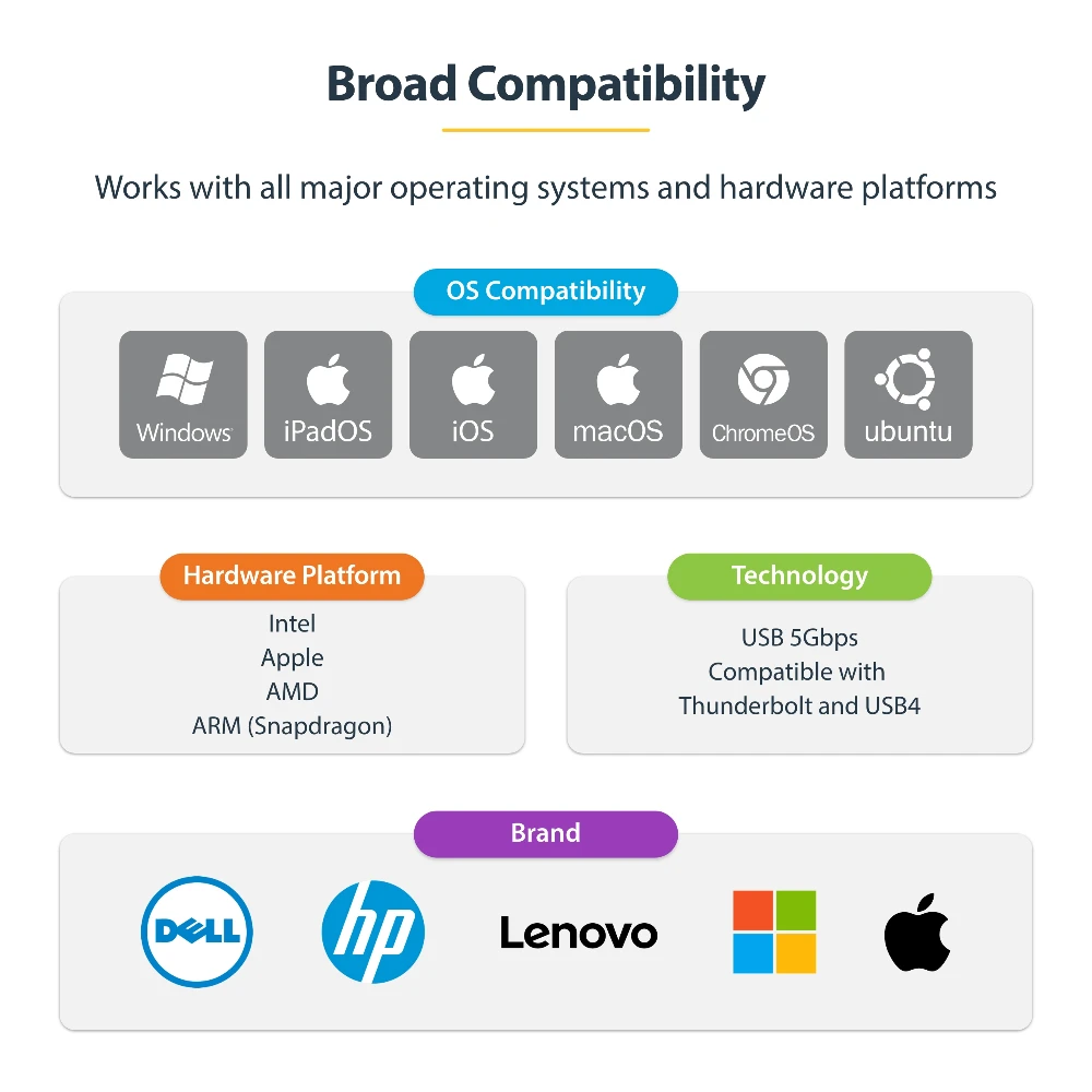 Simply plug this USB-C to Ethernet adapter into the USB port on a laptop and connect to a network. The network adapter Realtek chipset provides native driver support for Windows (10/11, ARM supported) Macbooks (MacOS), Chromebooks (ChromeOS), Snapdragon, Linux, iPhones, and tablets. Any Windows operating systems without the driver will be automatically prompted to download the software directly from the adapter, ensuring quick and effective installation with no Internet access required.